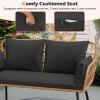 ● Hand-Woven Rattan: The seat frame features handcrafted mix yellow PE rattan , offering a stylish, sunproof, and breathable design. With premium woven wicker, this outdoor wicker loveseat ensures lasting beauty and comfort .