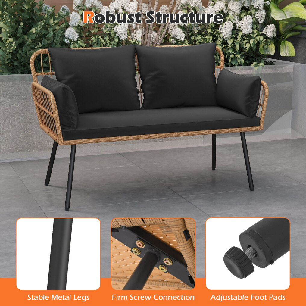 ● Robust Structure: 4 sturdy metal legs firmly support the outdoor loveseat with a weight capacity of up to 800 lbs. Plus, firm screw connection and adjustable foot pads increase stability, ensuring your furniture stays balanced and safe.