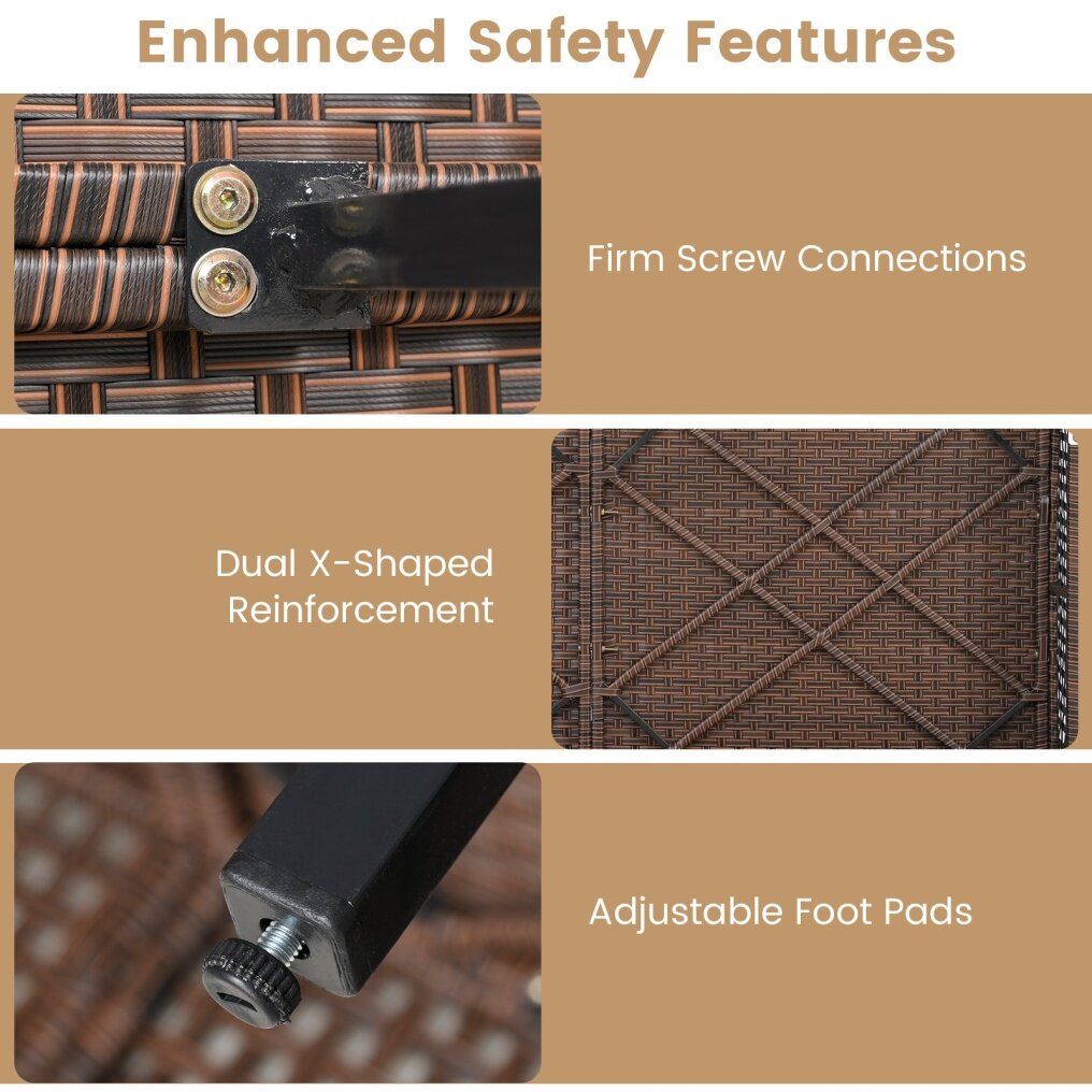 ● Hand-Woven Wicker Design: This daybed features open-woven mix brown rattan that is not only visually appealing but also breathable. Plus, the rattan material is anti-fading and sunproof, ensuring durability for long-term outdoor use.