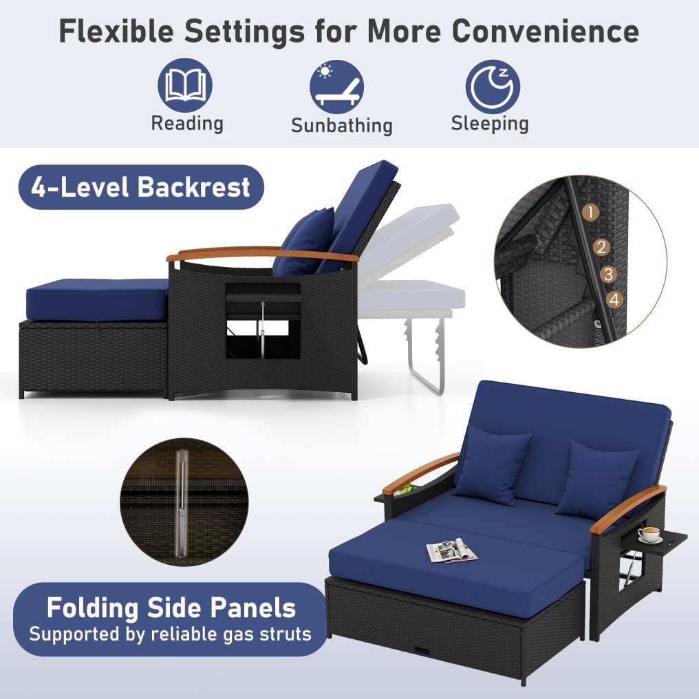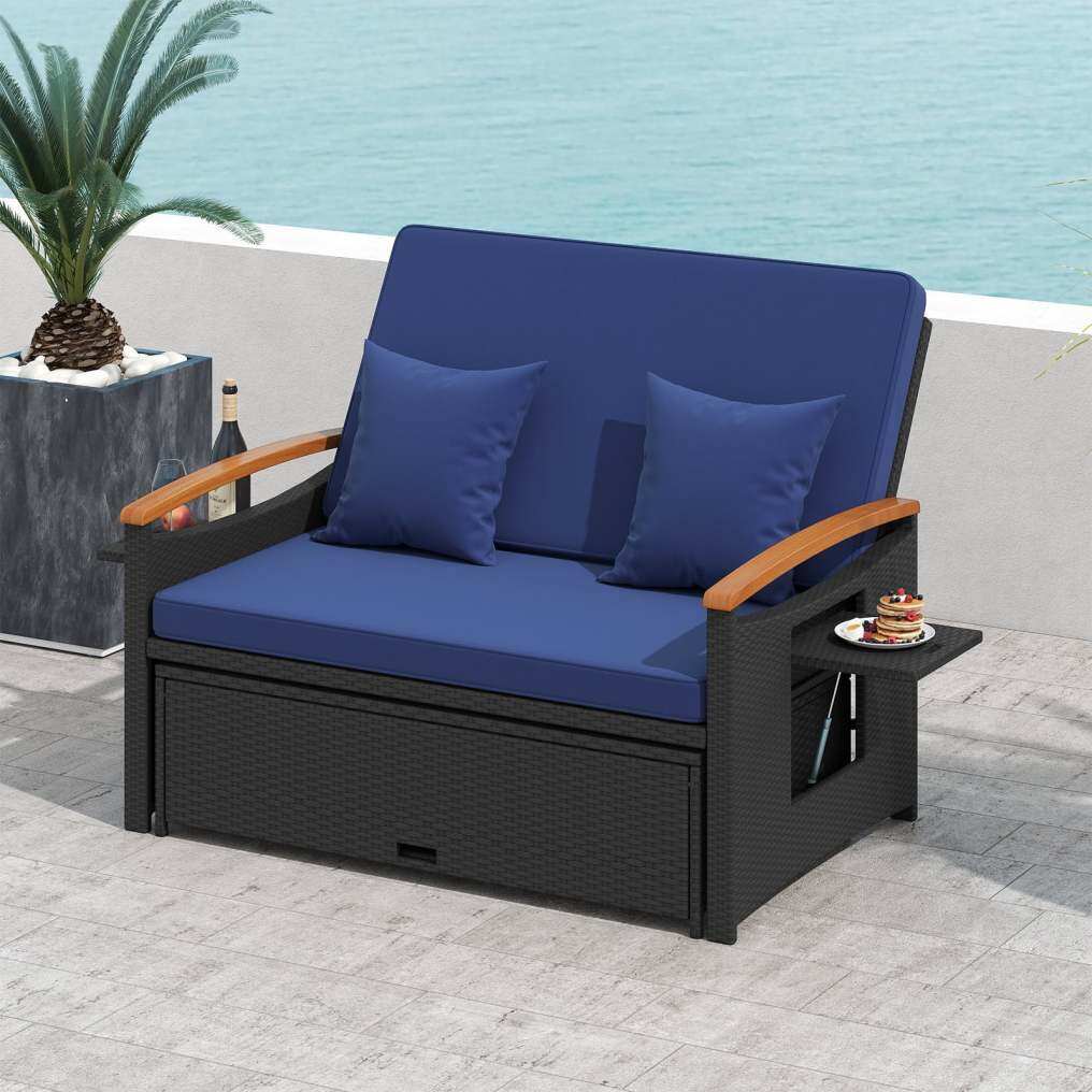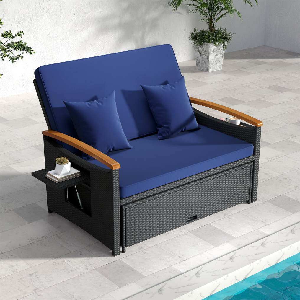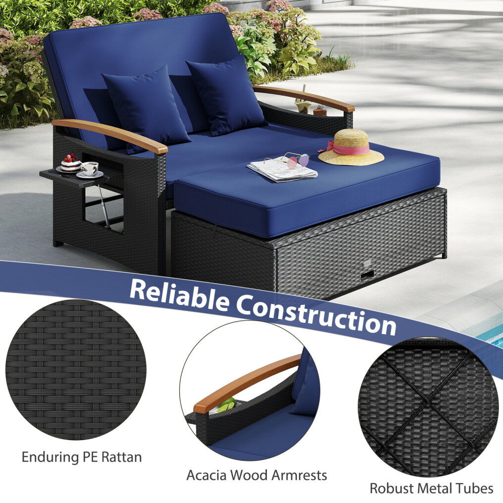 Outdoor Wicker Daybed with Folding Panels and Storage Ottoman-Dark Blue Sourcing Wholesale Supplier/Distributor | B2B Marketplace