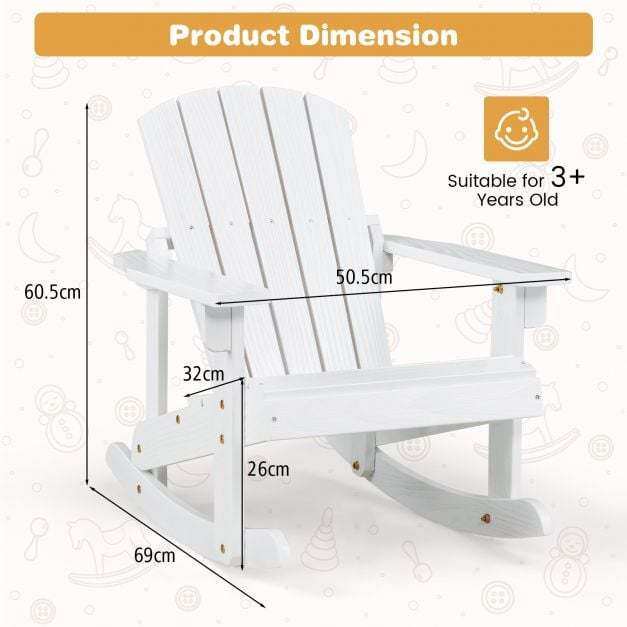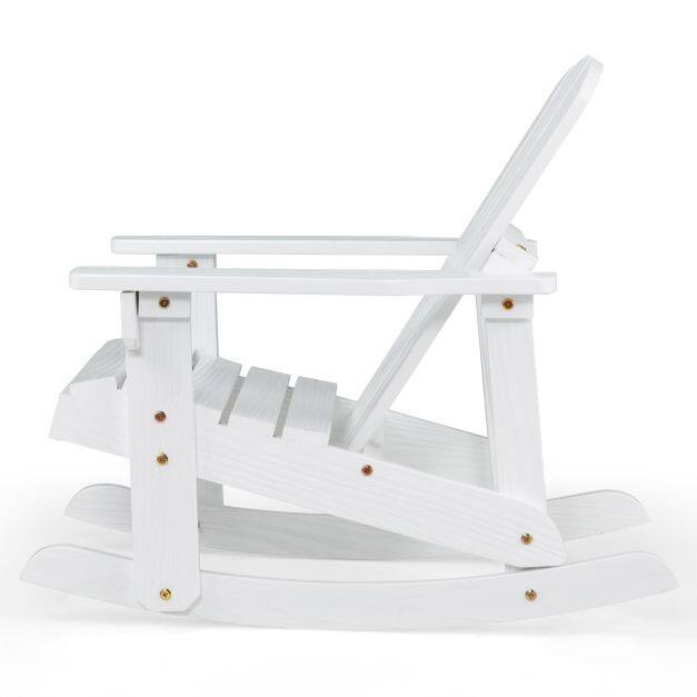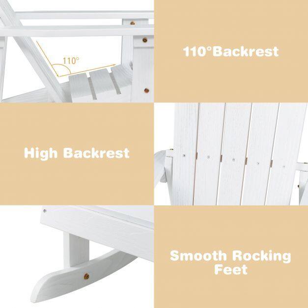 ● High-quality Wood: Crafted from of 100% natural fir wood, which is characterized by its resistant to deformation, this adirondack rocker promise a long service life. Besides, coated with water resistant paint, the rocker is impervious to the rain outside.