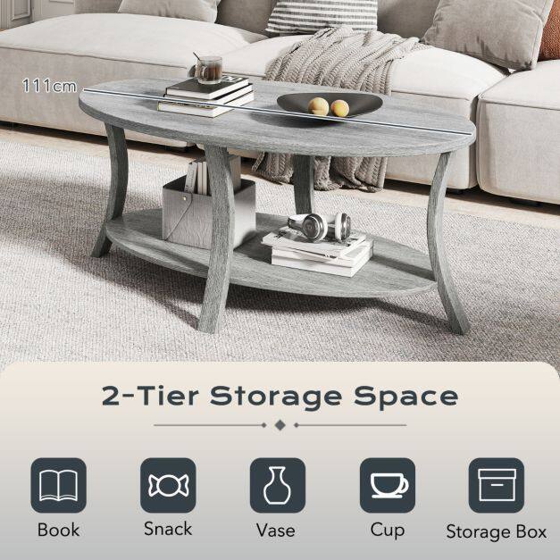●Convenient 2-Tier Design: The coffee table boasts a spacious tabletop and a practical open shelf underneath. Ideal for storing books, magazines, and decorative items, this table helps keep your living area tidy and organized.