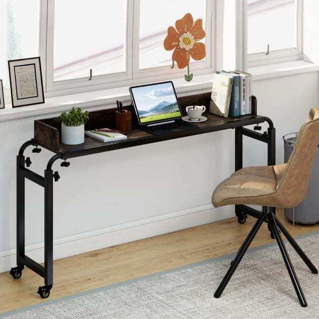 Enhance your workspace with this overbed table with wheels.