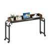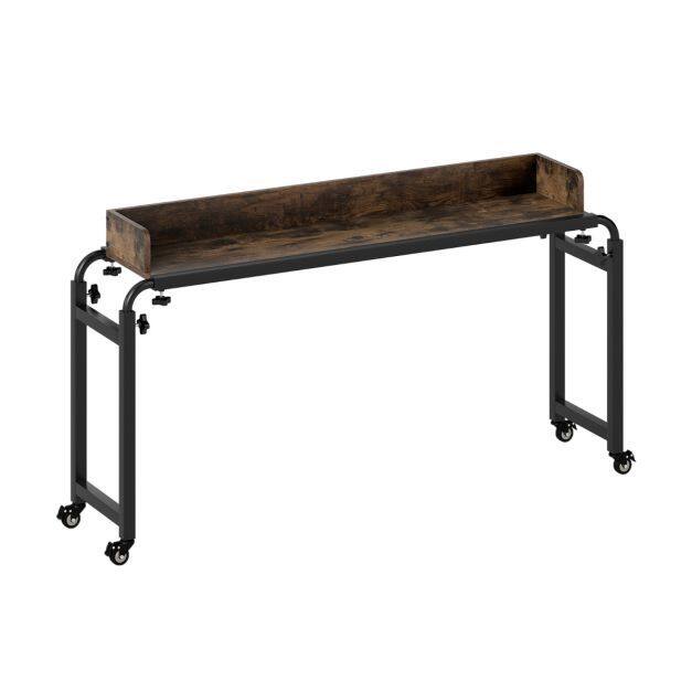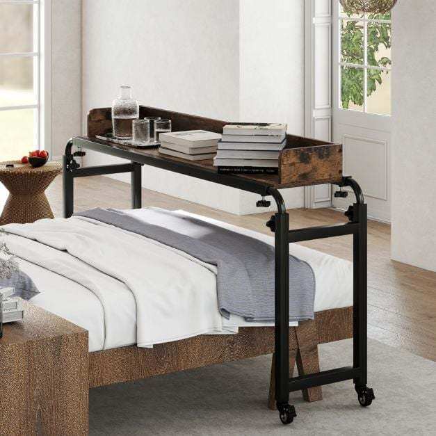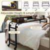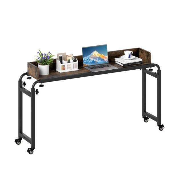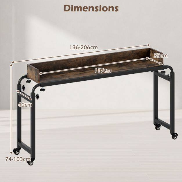 This mobile overbed table features an adjustable height (73.5-102.5 cm) and length (135.5-206 cm), making it a perfect fit over queen-size beds or seating areas. Thanks to its large, high-barrier tabletop, the overbed table provides a secure platform for working, dining, or entertaining. For easy movement and a secure hold, four lockable casters position the table wherever you need it. Built to last, this rolling computer desk is supported by a sturdy metal frame. The laptop cart is designed to provide convenience and functionality in a variety of settings, including home and office.