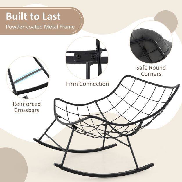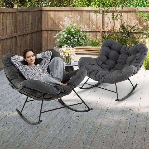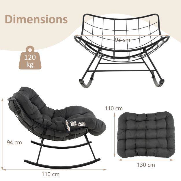 Combines Sturdiness and Comfort: The outdoor rocking chair is crafted with a heavy-duty metal frame, boasting a remarkable 205 kg weight capacity. The 110 x 95 x 94 cm (L x W x H) ergonomically designed oversized seat perfectly aligns with your lap, hip and waist, ensuring a relaxing sitting posture.