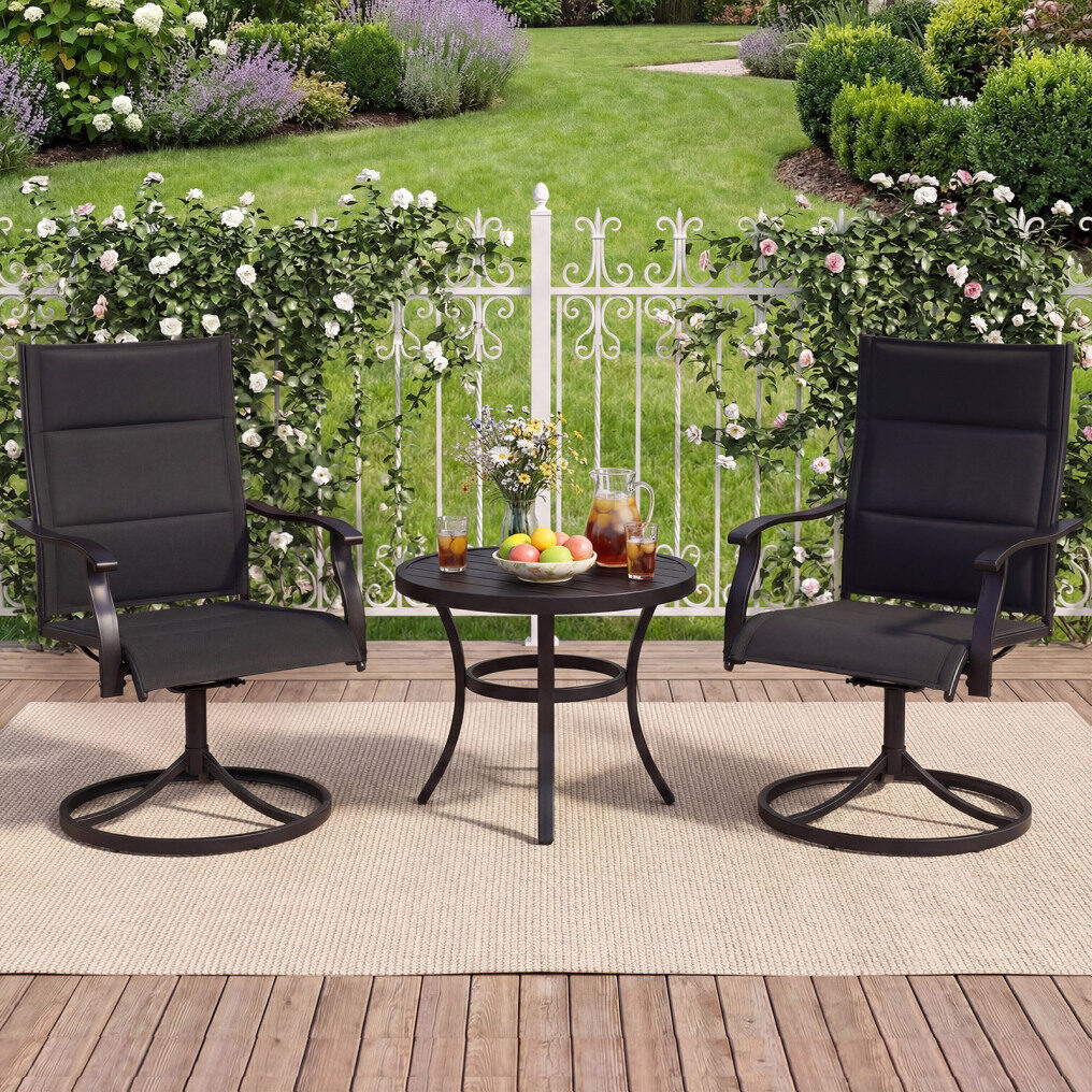 ● 360° Swivel & 15° Rocking: These patio chairs feature smooth 360-degree swivel seats and a gentle 15-degree rocking motion, allowing you to relax effortlessly while enjoying conversations or sunsets in your backyard.