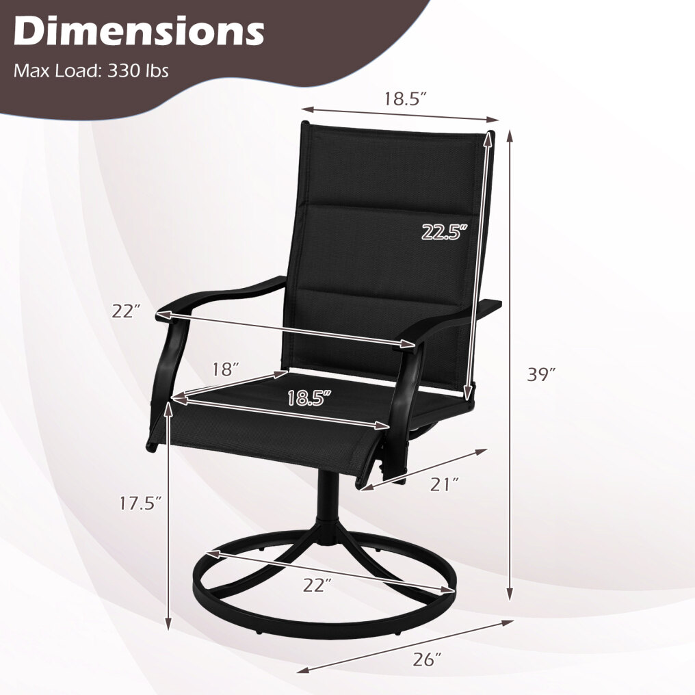 ● Breathable Fabric & Soft Padding: Crafted with quick-drying, wear-resistant fabric and filled with soft foam, these outdoor swivel chairs provide excellent airflow and ultimate comfort, while ensuring long-lasting use.