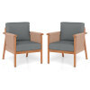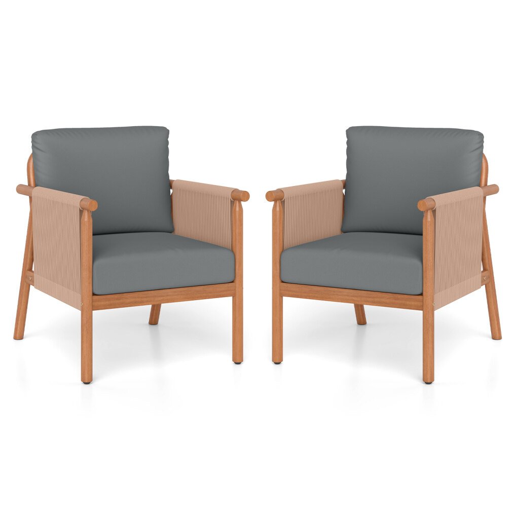 Patio Acacia Wood Chair Set of 2 with Woven Rope Armrests and Seat Back Cushions for Backyard-Gray