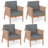Patio Acacia Wood Chair Set of 4 with Woven Rope Armrests and Seat Back Cushions for Backyard-Gray