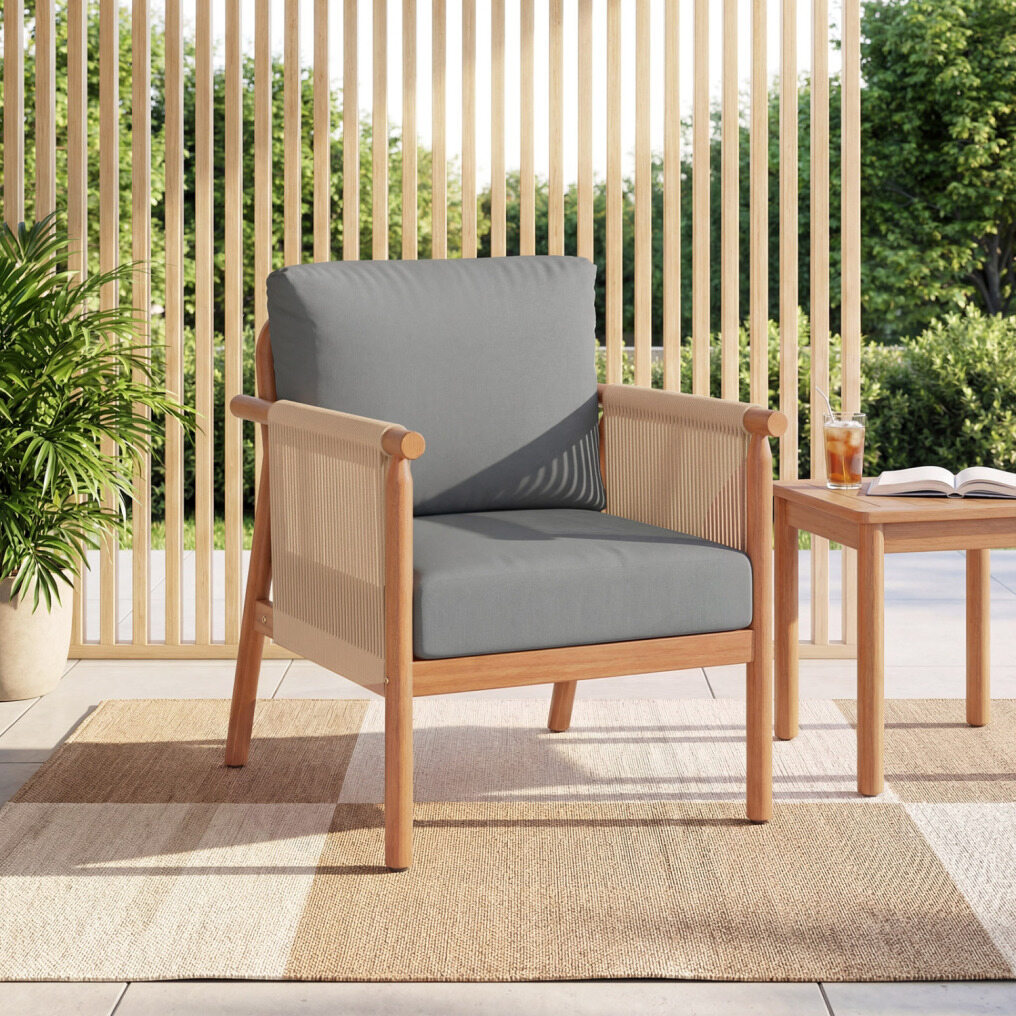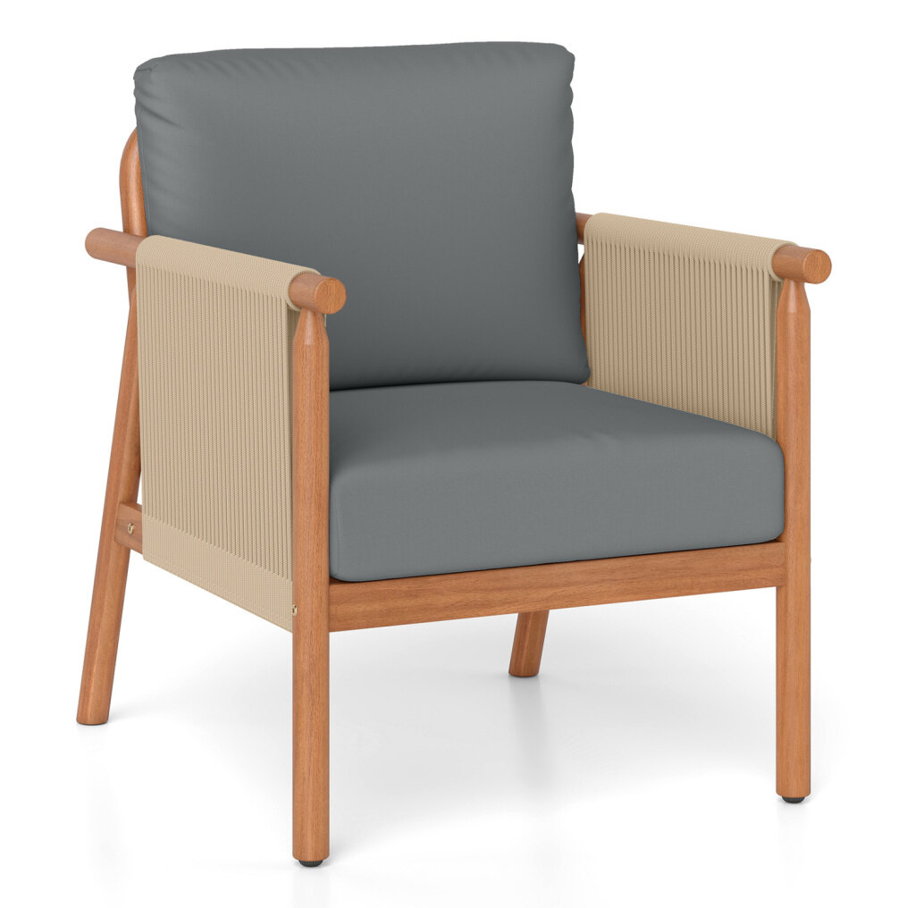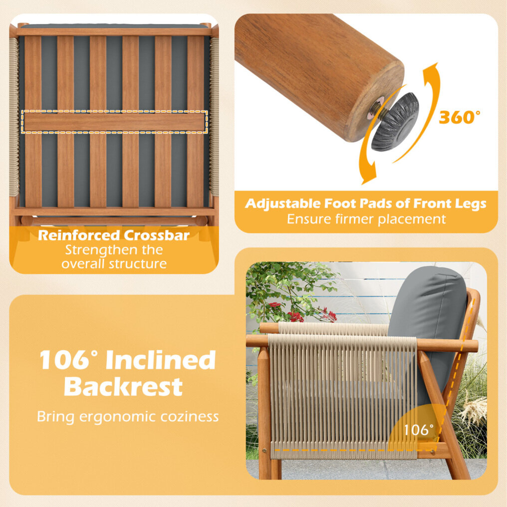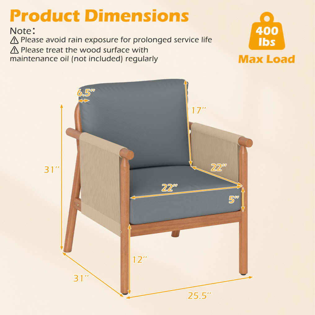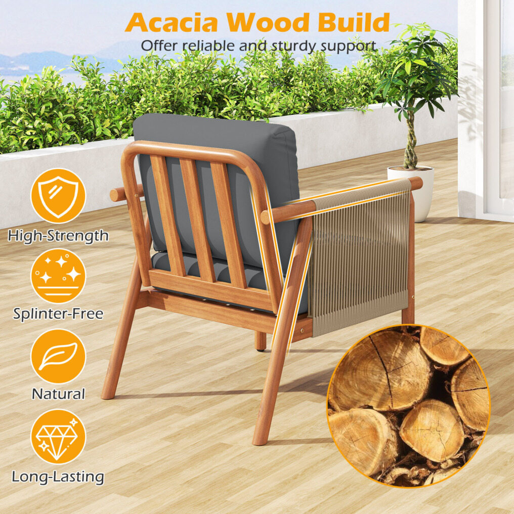 ● Natural Boho Elegance: Featuring intricately woven rope armrests, this patio acacia wood chair embodies authentic boho style. The natural fiber craftsmanship adds rustic elegance and a warm, earthy feel, bringing more aesthetic.