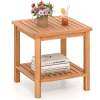 ● 2-Tier Storage Space: Featuring a square tabletop and a bottom shelf, this outdoor end table facilitates the placement of books, beverages, snacks and potted plants. The thoughtful layout enhances organization and maintain a tidy space.