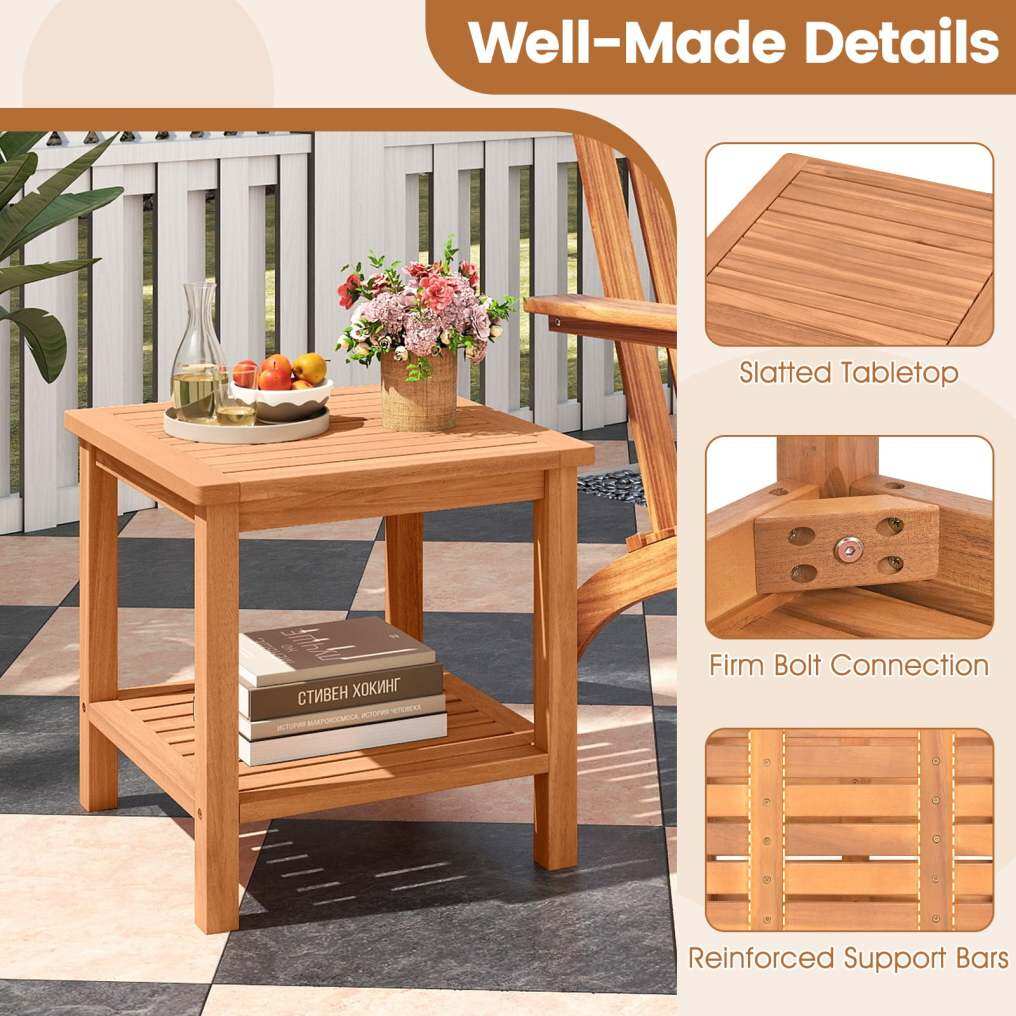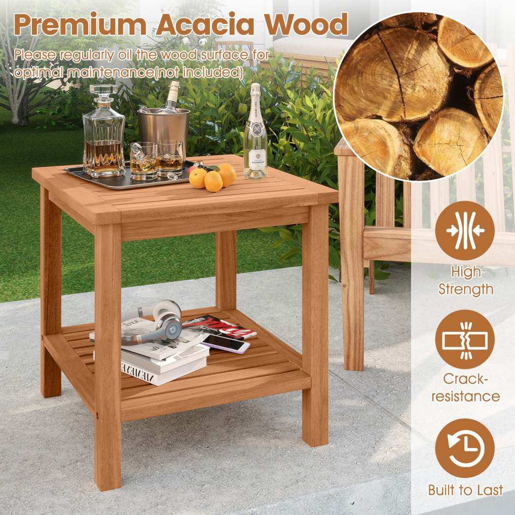 ● Premium Acacia Wood: Constructed from premium acacia wood, this patio side table offers exceptional durability and resistance to cracking. The selected material and sturdy construction make it a reliable outdoor companion.