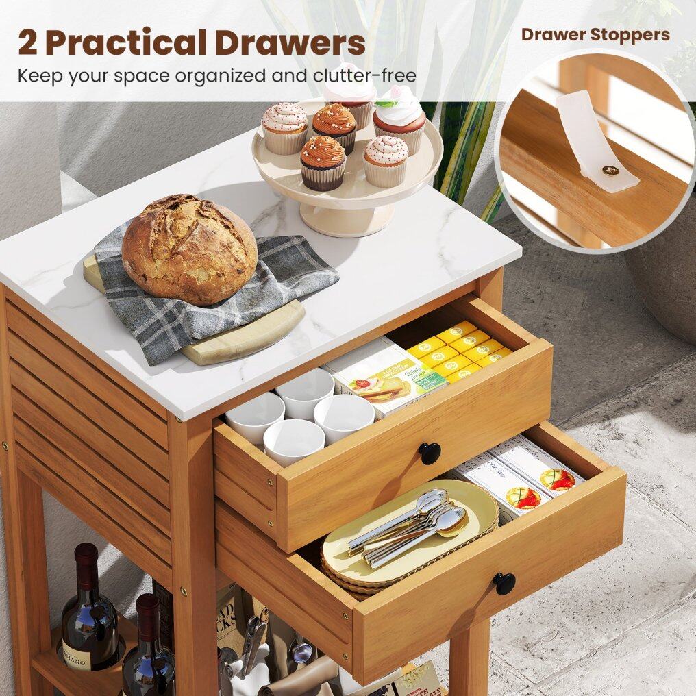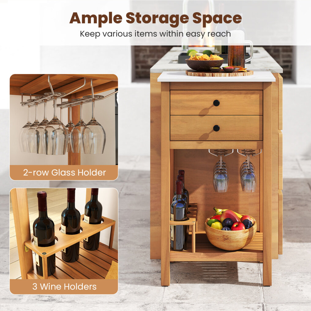 ● Elegant Faux Marble Top: The outside cabinet with drawers is topped with a faux marble countertop that adds an elegant look to your outdoor space. Its resin honeycomb structure provides scratch resistance and makes cleaning effortless.
