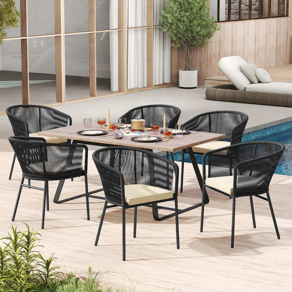 ● Comfortable Armrests and Dimensions: This outdoor dining chair is designed with well-designed armrests that provide arm support and relieve fatigue. The overall dimensions are 23.5" x 22.5" x 30.5" (L x W x H)