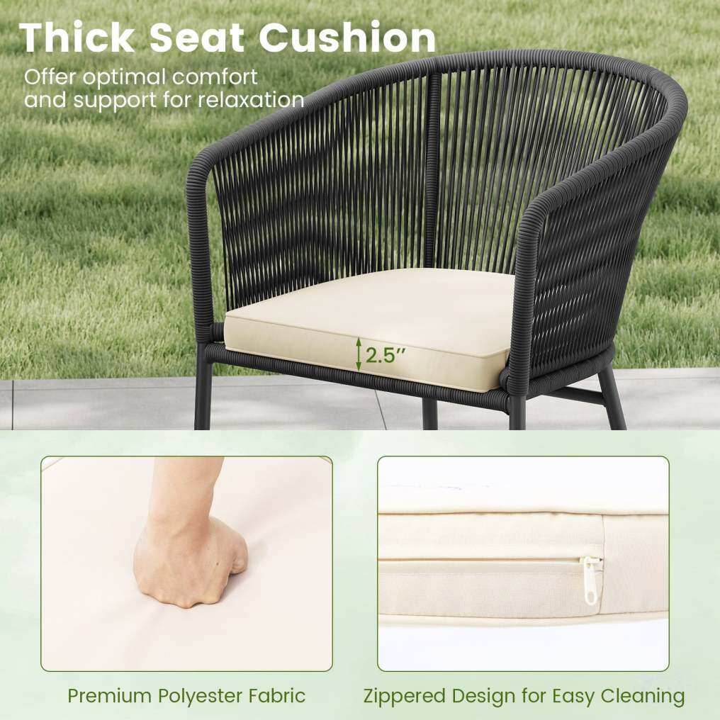 ● Comfortable Seat Cushion: Featuring a soft seat cushion with high-density fillings, this patio chair offers a comfortable seating experience. The skin-friendly fabric is safe to use, and the zipper design makes it easy to remove the cover fabric for easy maintenance.
