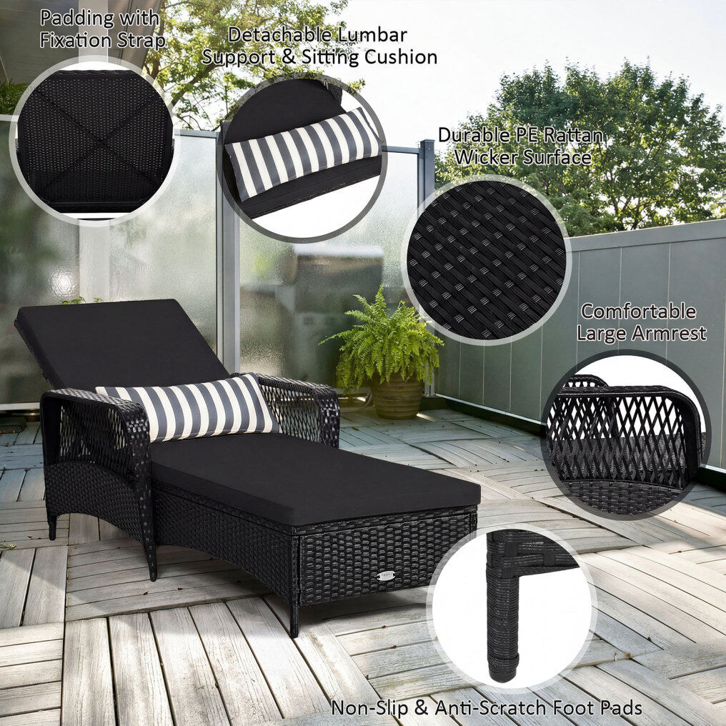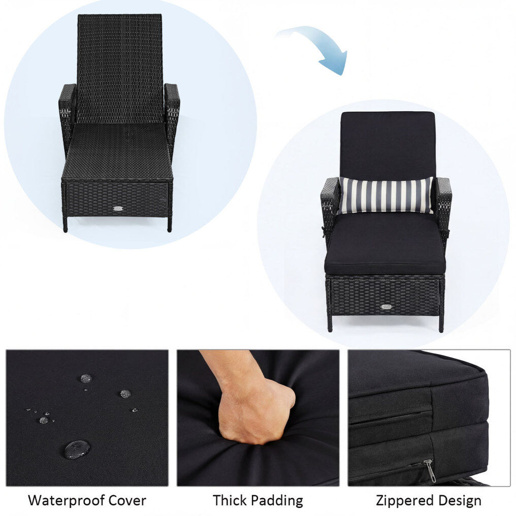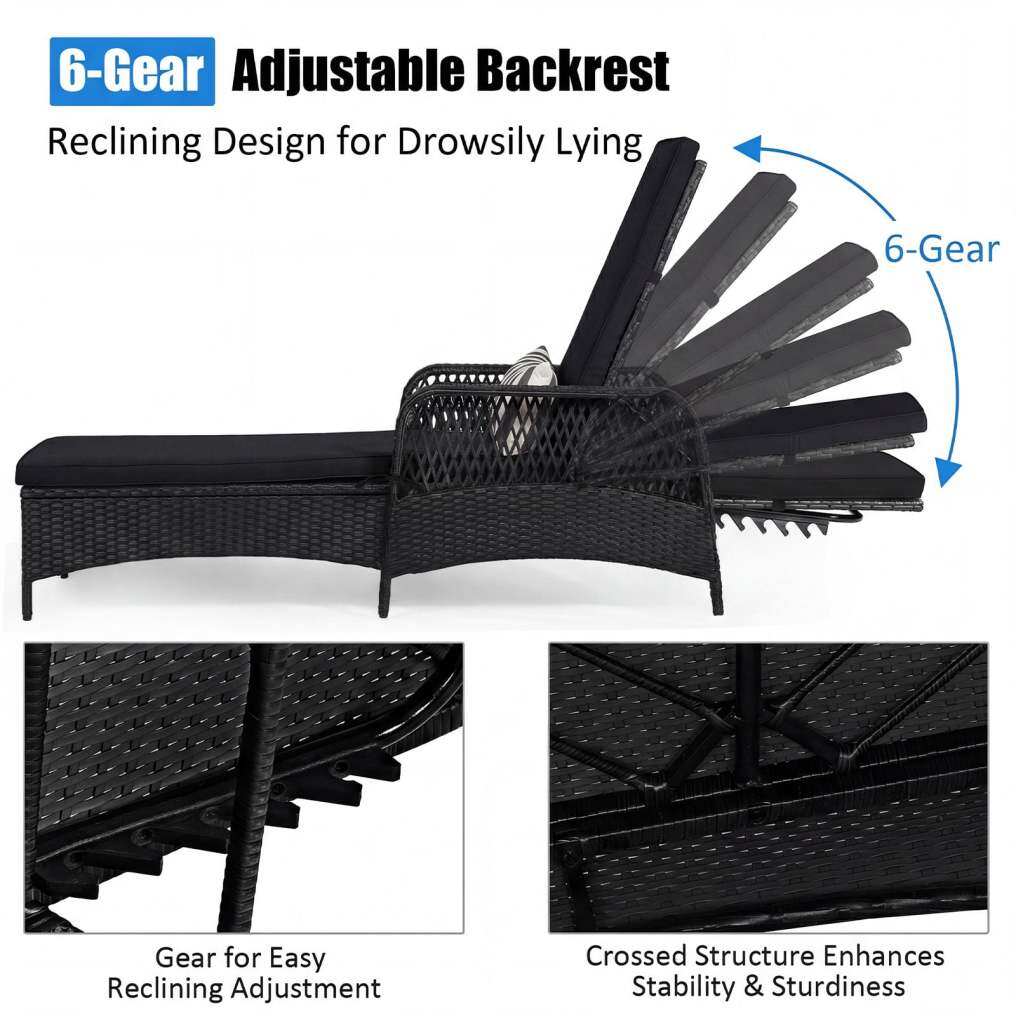 ● 6-Gear Adjustable Backrest: With its adjustable backrest that can be set in six different reclining positions, this outdoor wicker chaise can function as different furniture to meet various needs. You can sit on to read or chat with your friends, lean against it to admire the view, or lay down for a nap or sunbathe.