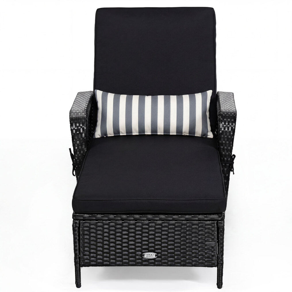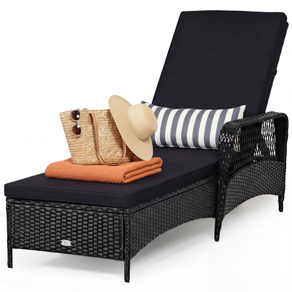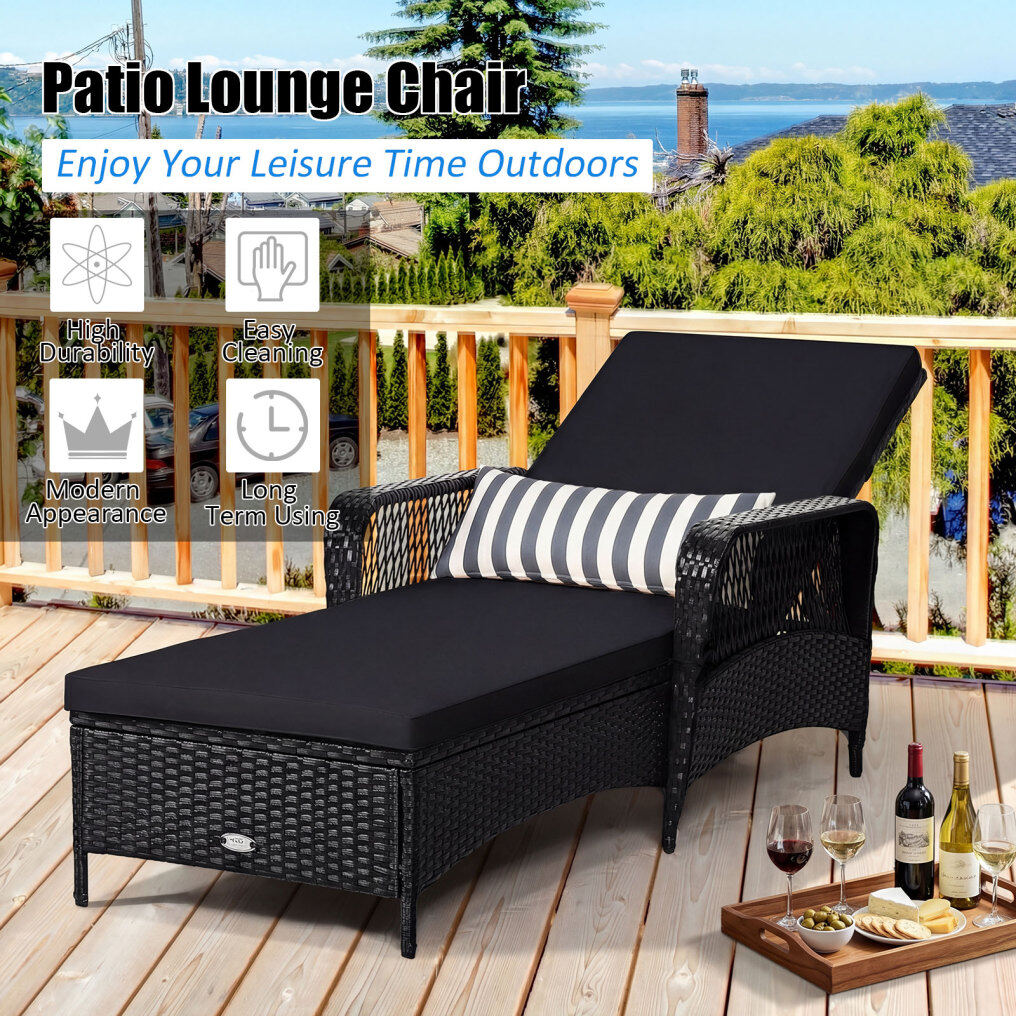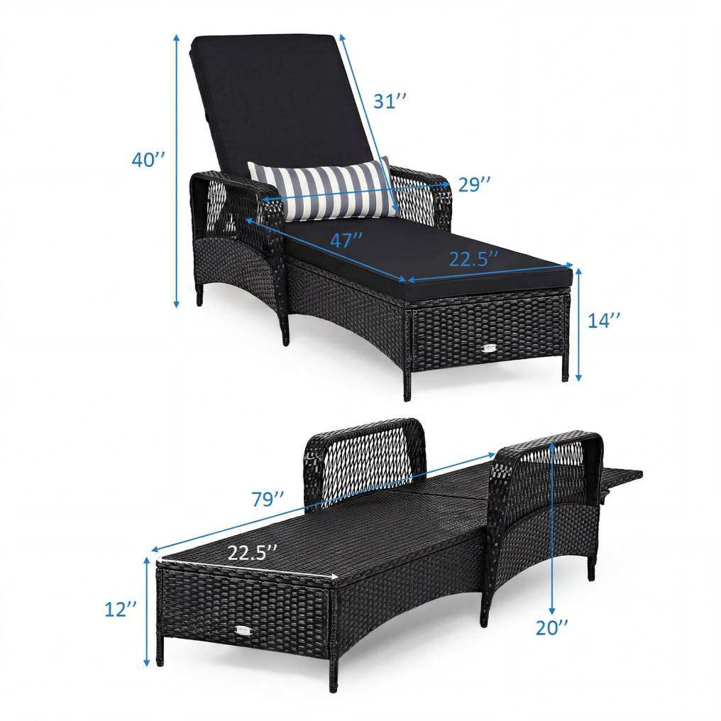 ● 6-Gear Adjustable Backrest: With its adjustable backrest that can be set in six different reclining positions, this outdoor wicker chaise can function as different furniture to meet various needs. You can sit on to read or chat with your friends, lean against it to admire the view, or lay down for a nap or sunbathe.