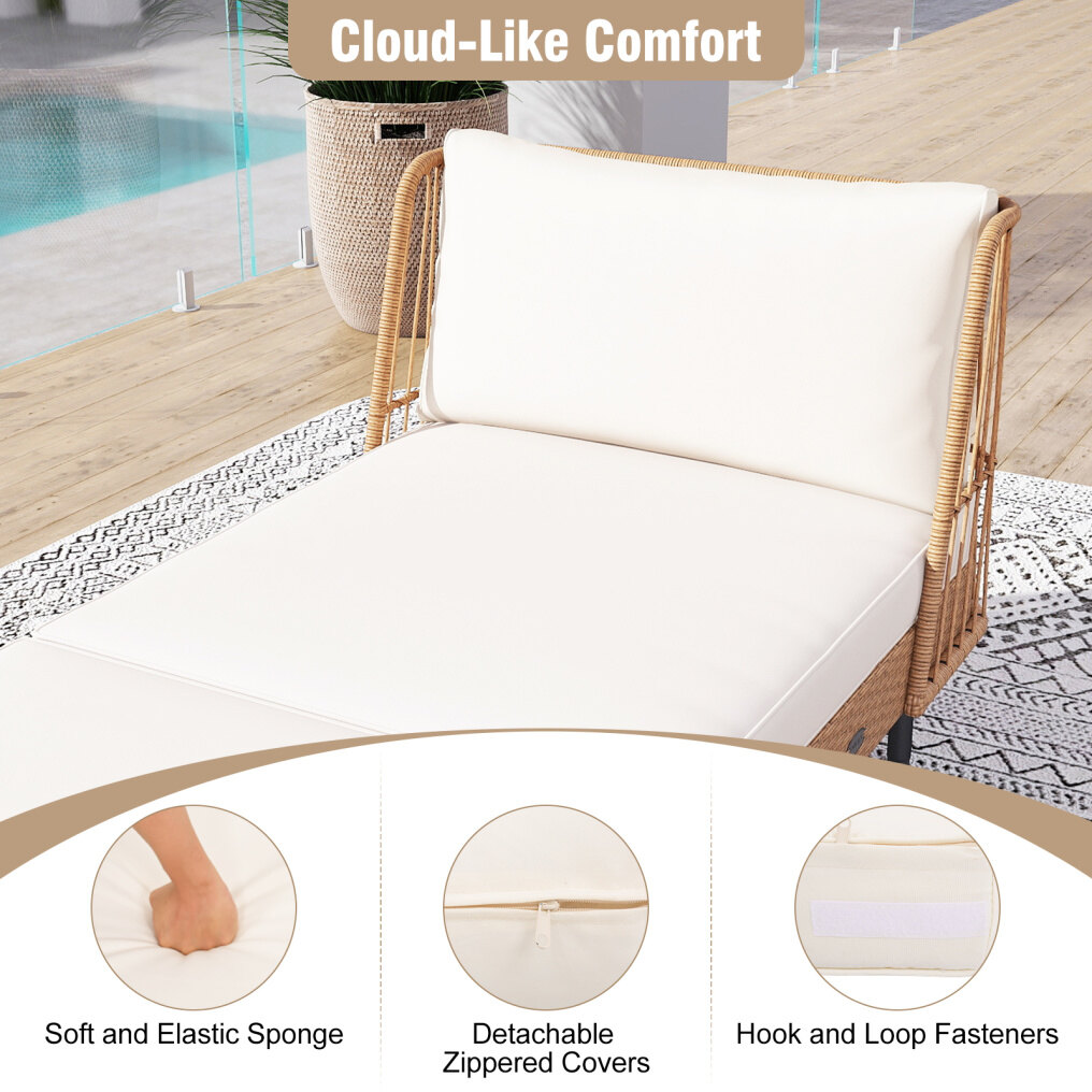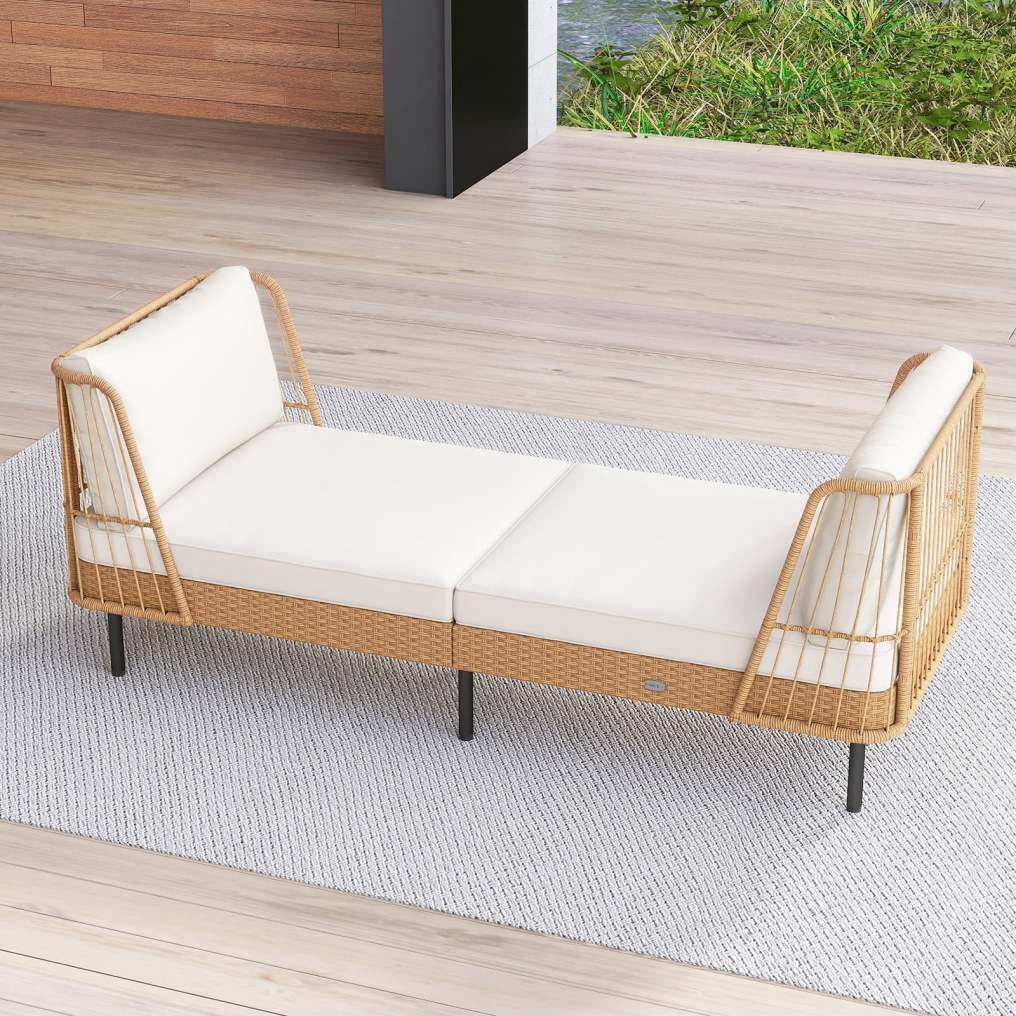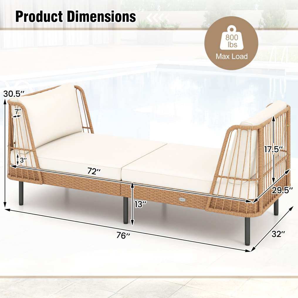 ● Cloud-Like Cushions: The 2 back cushions and 2 seat cushions of the rattan daybed are filled with soft and elastic sponge for cloud-like comfort. The 2 seat cushions connect securely with hook and loop fasteners, and detachable zippered covers make cleaning simple. Plus, the armrests on the 2 sides effectively keep the cushions in place without moving.