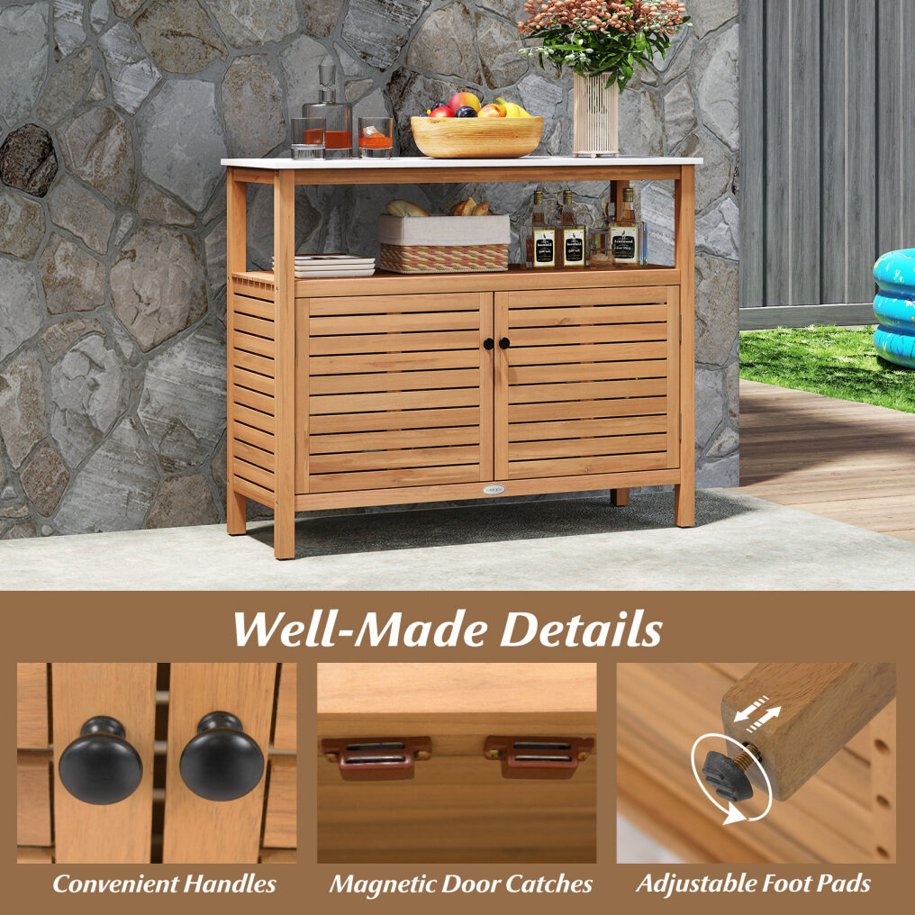● Versatile Outdoor Use: Perfect as an outdoor kitchen organizer, garden workstation, or backyard sideboard, this acacia wood patio cabinet enhances organization and functionality in any outdoor living space. Note: Please avoid rain exposure for prolonged service life.