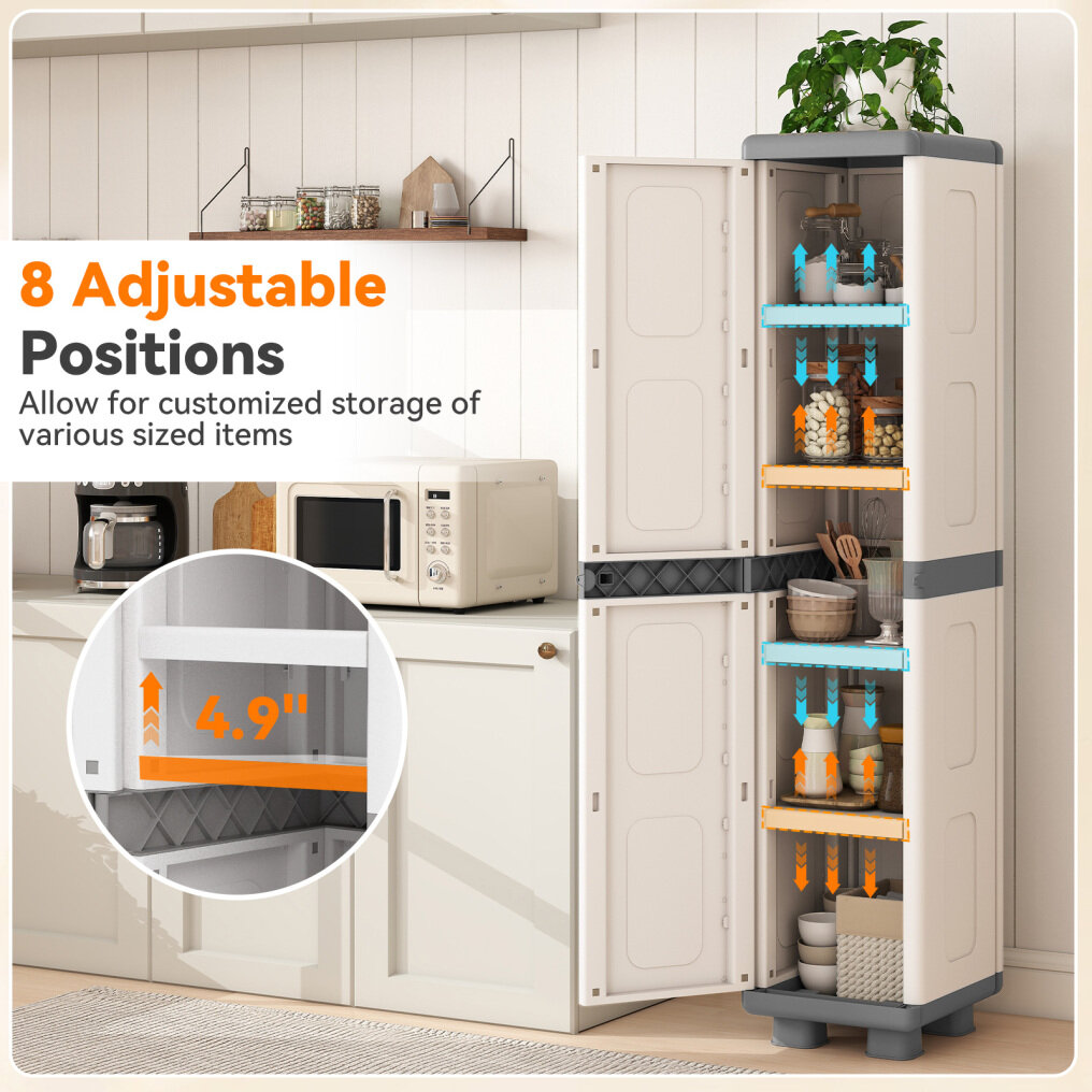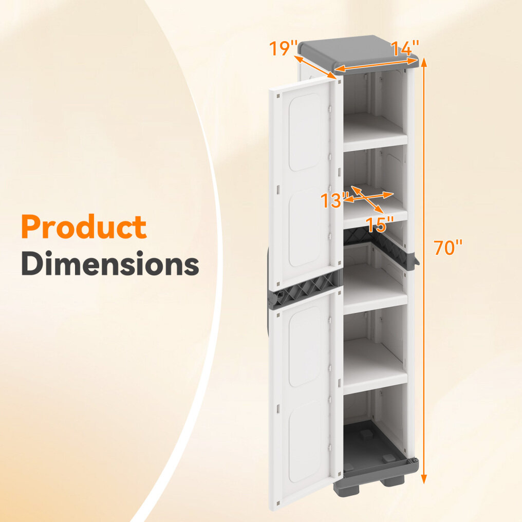 ● Ultimate Capacity Solution: This tall storage cabinet features 5 spacious compartment and 4 adjustable shelves to maximize your room. So you can easily customize the interior height for different items.