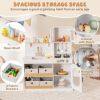 Ample Storage Options: Keep everything organized with 4 removable and foldable non-woven storage bins, 3 hanging hooks for utensils, an open shelf, a cabinet with shelves, and a cupboard. The play kitchen with storage is perfect for teaching kids about cleanup and organization.
