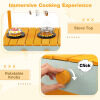 ● Chef's Paradise: Spark culinary creativity with 2 stoves, 2 clickable rotation knobs, and a suite of cooking accessories including a frying pan, pot with lid, skimmer, spatula, and spoon. This setup not only mimics a real-life kitchen but also offers a playful platform for kids to engage in imaginative meal preparation and role-playing.