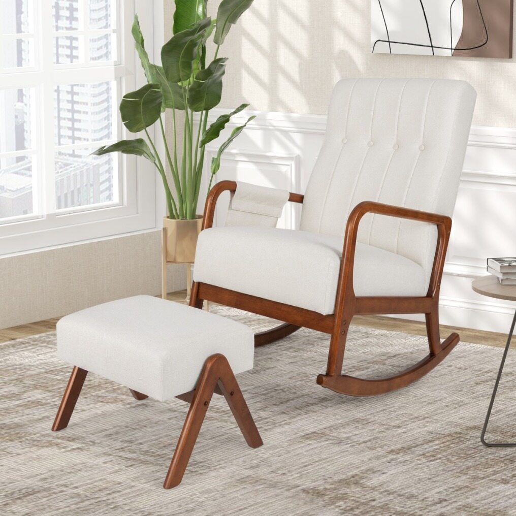 Reduce stress and ward off fatigue with our rocking chair and ottoman set!