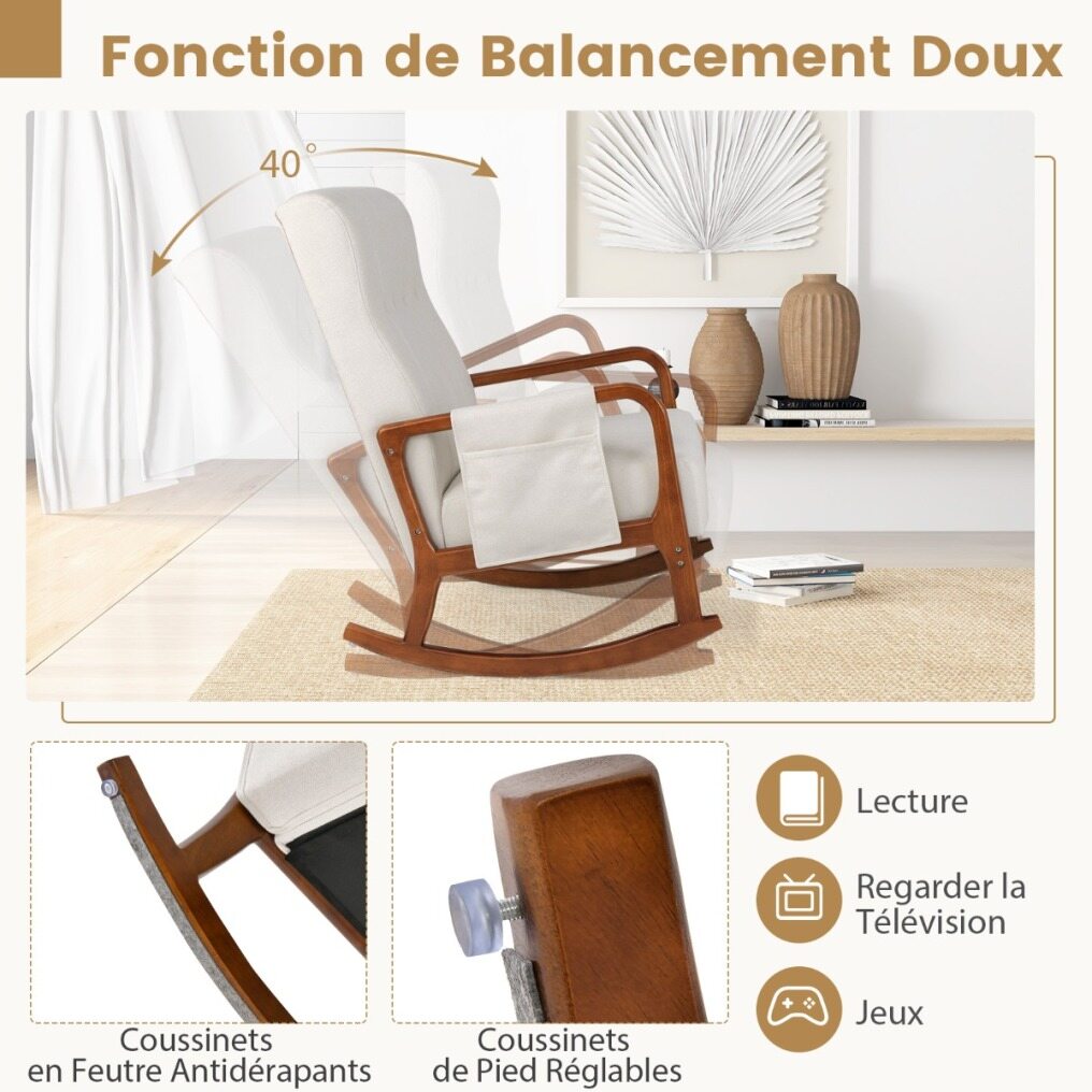 Gentle Rocking Movement: With non-slip felt glides and adjustable feet, the modern rocking chair ensures safe and gentle movements within a 40° angle. Relax while reading, watching TV or playing games, rocking back and forth.