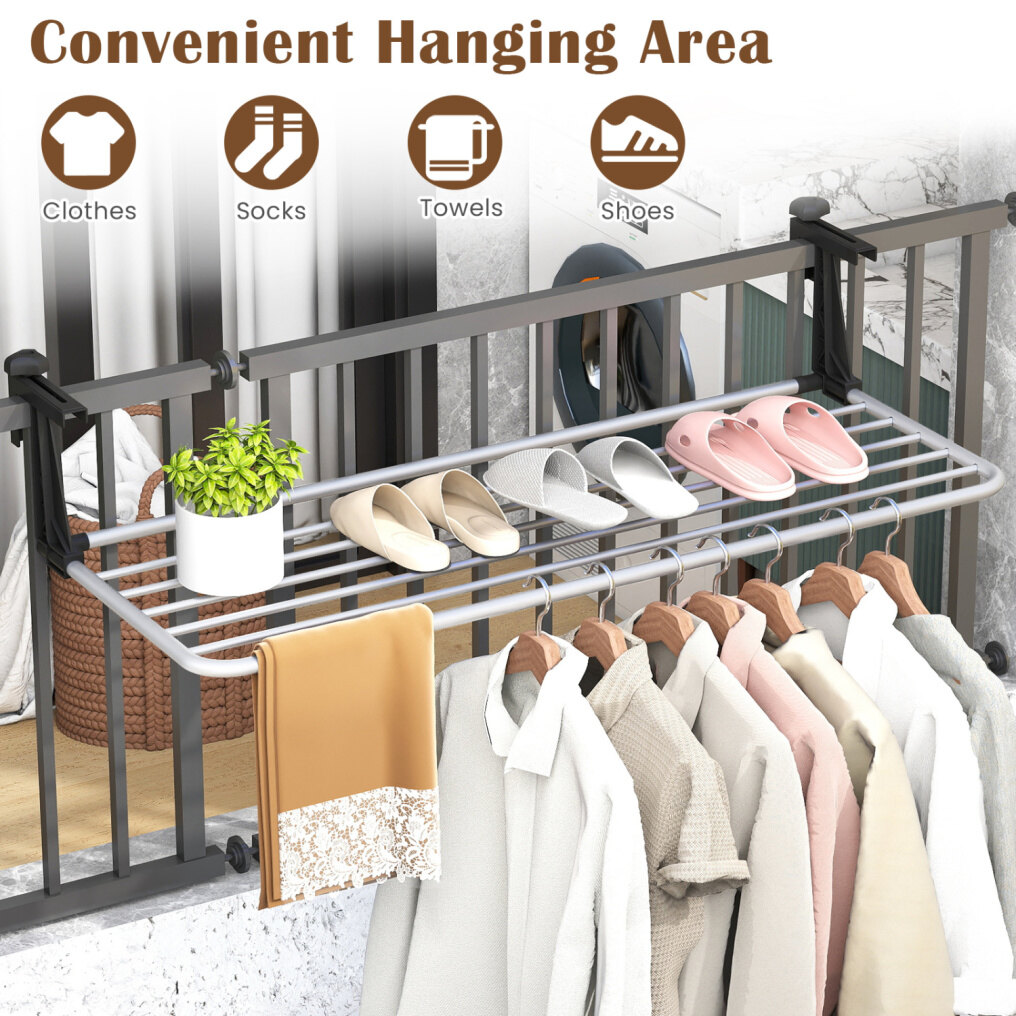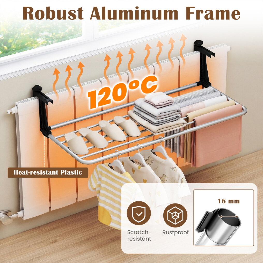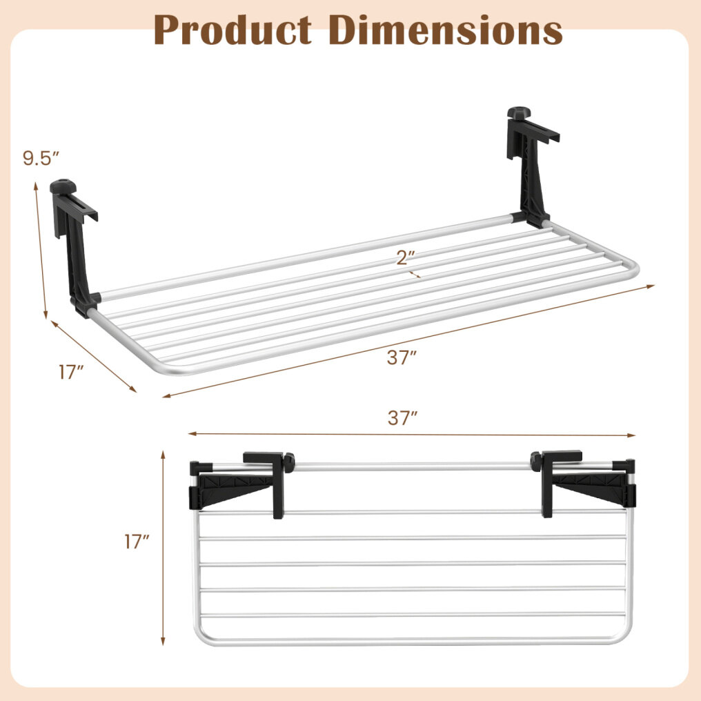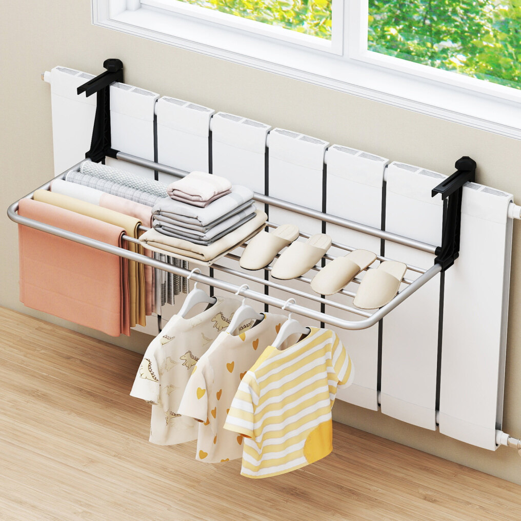 ● Convenient Hanging Area: Designed as a versatile drying rack, it easily accommodates clothes, socks, towels and shoes with 2" wide spacing that promotes airflow for faster and fresher drying every time.