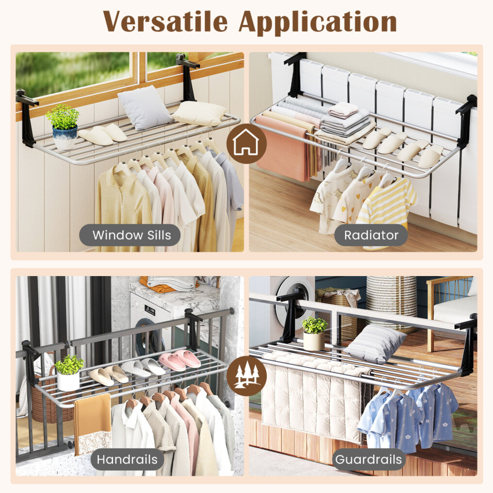 ● Versatile Application: This portable drying rack excels in various occasions, from indoor rooms to outdoor balconies, window sills, radiators, handrails and guardrails, making it a truly adaptable solution for all your drying requirements.