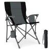 Designed for Convenience: With a foldable cupholder and a side storage pocket, the portable chair ensures easy access to your drinks and essentials. Fabric covered armrests add an extra layer of comfort during extended seating.