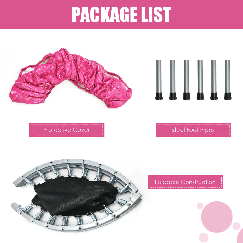 Initiate Details: Every steel pipe leg is equipped with a rubber foot pad, which is anti-slip and can greatly enhance the overall stability when in use. It can also prevent the scratches on the floor. Moreover, there is little noise when you jump on it so that you can totally enjoy the bounce without worrying about disturbing others.