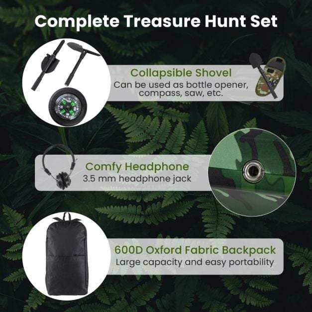 Complete Treasure Hunting Set: The folding shovel is a great companion for outdoor adventures and can be used as a bottle opener, compass, saw, etc. A comfortable headphone is included, saving you extra time for purchasing. Made of durable Oxford fabric, the backpack offers large capacity and easy portability and you can easily take it outdoors.