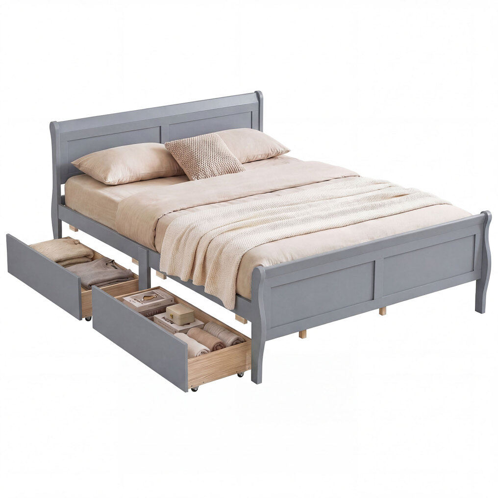 ● Well-crafted Details: Enjoy a cleaner look and feel with the full size/queen size sleigh bed, featuring a smooth, splinter-free finish that's easy to maintain. Rounded corners add an extra touch of safety, perfect for everyday living.