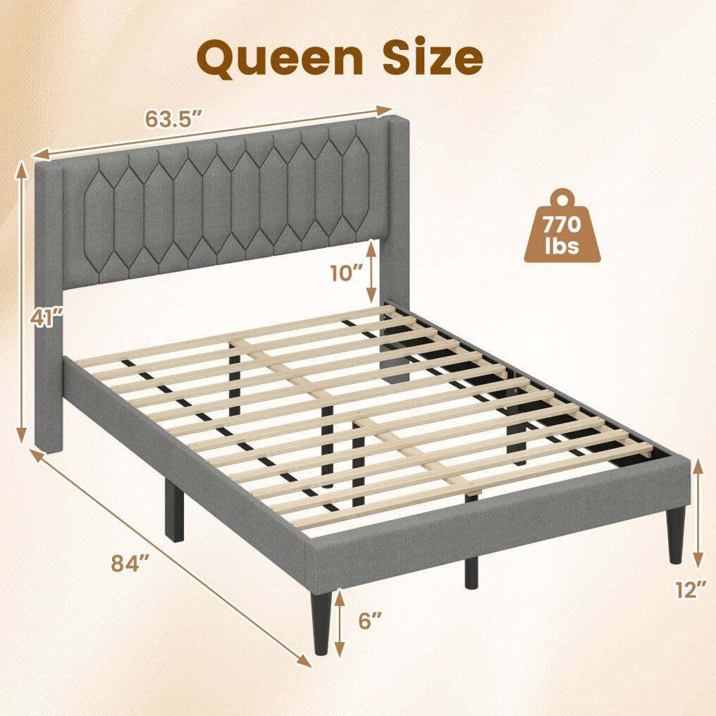 ● Heavy-Duty Support: A 10-leg system, together with 12 sturdy LVL slats, delivers rock-solid stability and a 770 lbs weight capacity. This queen size bed frame is engineered for years of reliable performance.