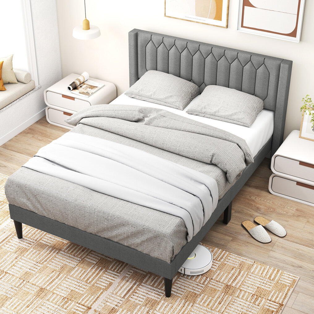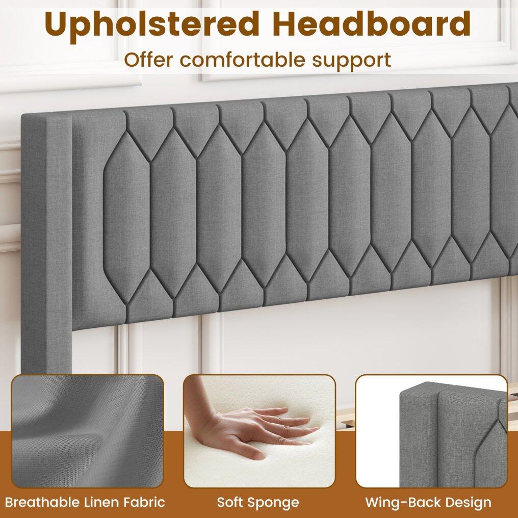 ● Modern Wingback Headboard: Wrapped in plush Dutch velvet/breathable linen fabric with geometric quilting, the wingback silhouette offers cushioned support for reading or screen time while adding a sleek, contemporary look.