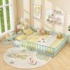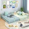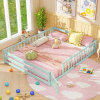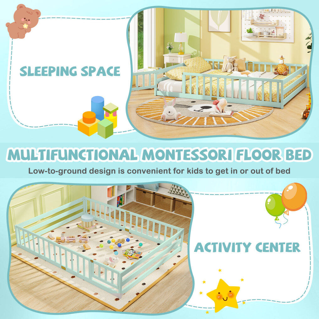 Queen Size Floor Bed Kids Montessori Bed Frame with Full Length Safety Guardrails-Green