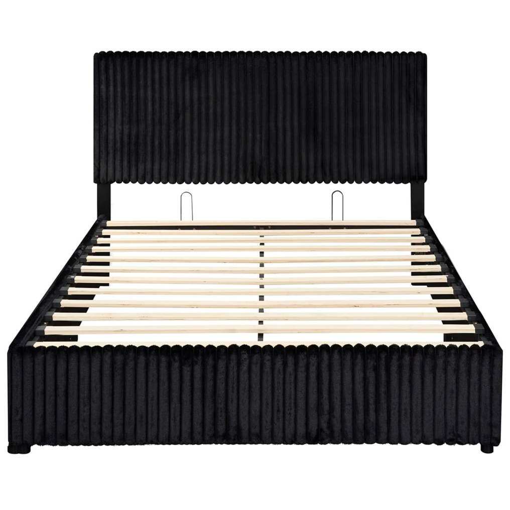 ● Hidden Storage: This lift-up storage bed features a generous 9.5-inch clearance underneath, creating ample space for off-season clothes, extra bedding, suitcases, and other bedroom essentials. The spacious hidden compartment keeps your belongings organized and dust-free while maximizing your bedroom's storage potential.