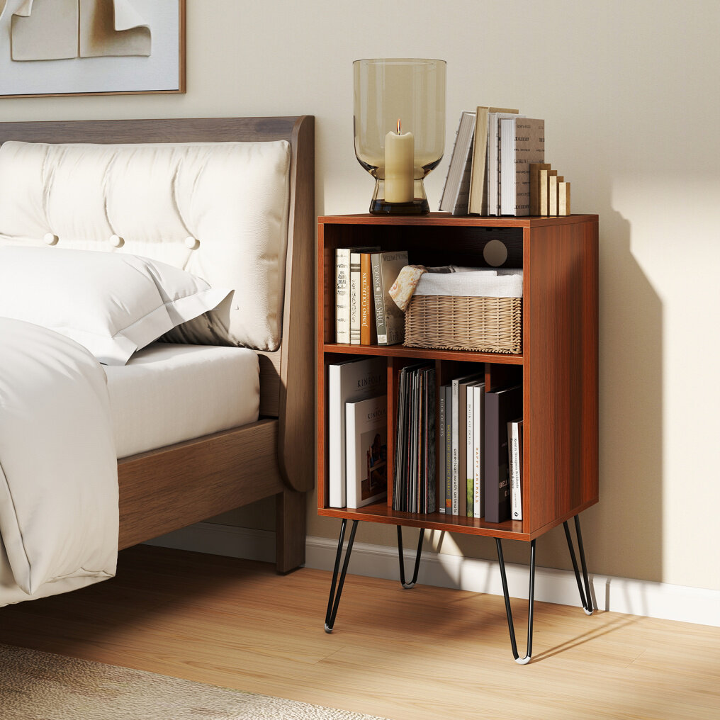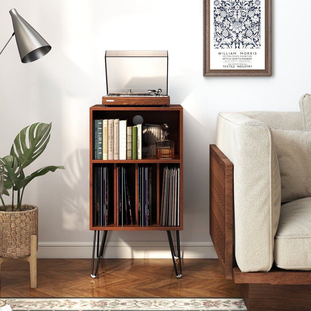 ● Optimal Adaptability: Discover the adaptability of the 19"L x 16"W x 35"H vinyl record storage cabinet, which not only acts as a turntable station but also seamlessly serves multiple purposes. It can be used as a side table, end table, or nightstand.