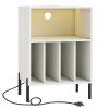 ● Convenient Charging Station: Equipped with a built-in charging station that includes 2 standard outlets, 1 USB port, and 1 type-C port, this record storage table ensures your devices stay powered up without clutter. The cable management hole at the back keeps wires organized.