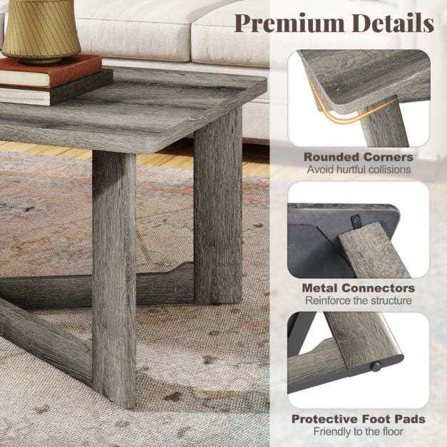 ● Premium Details: Every aspect of the living room table speaks quality, from its rounded corners and reliable metal connectors to the protective foot pads that safeguard your floors against scratches.