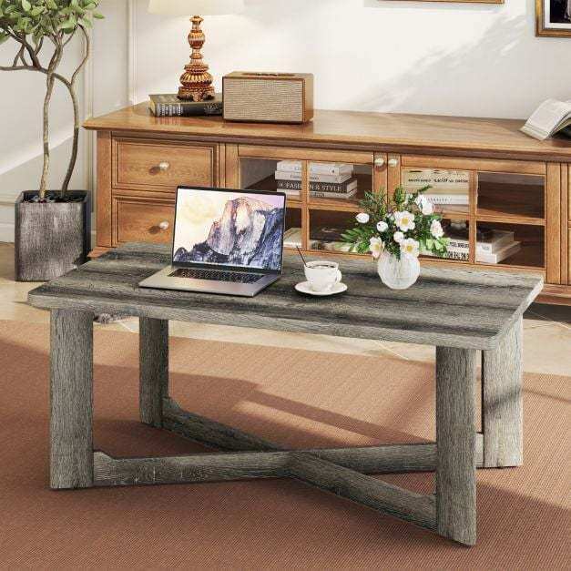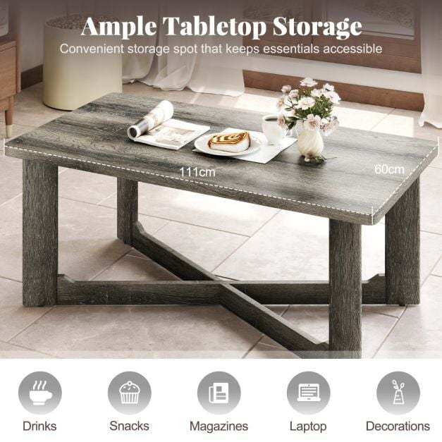 ● Robust Construction: The center table includes solid natural rubber wood for perfect longevity. Moreover, its 4" thick legs and X-shaped base provide a strong foundation that can support up to 250 lbs.