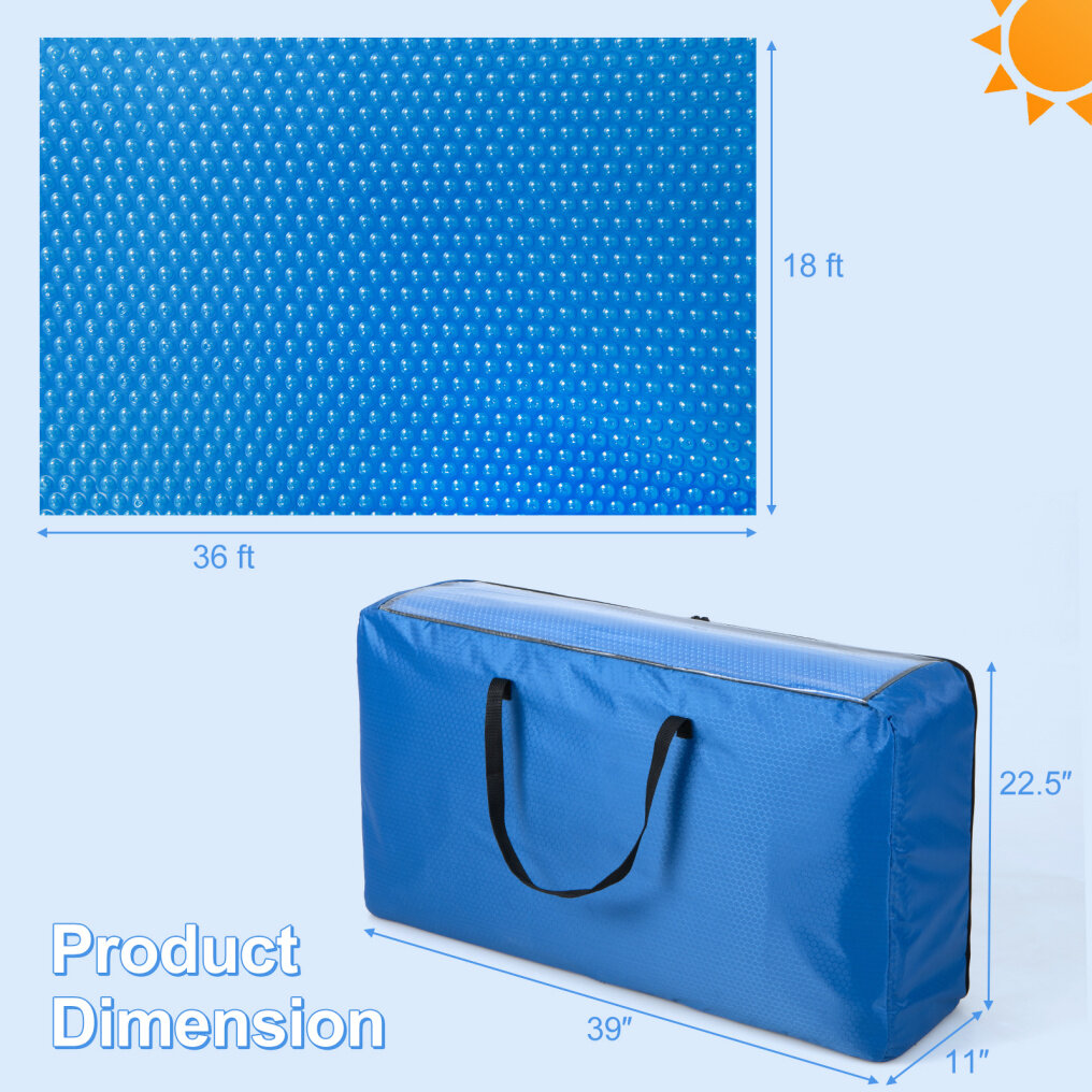 ● Keep Your Pool Clean & Tidy: This pool solar blanket can not only keep your pool water warm, but also protect water from dust, leaves or any other pollutants. What's more, the pool cover prevents 95% of pool water and chemical evaporation, which avoids wasting water and helps to extend the life of your swimming pool. (Please Note: Bubble-side down)