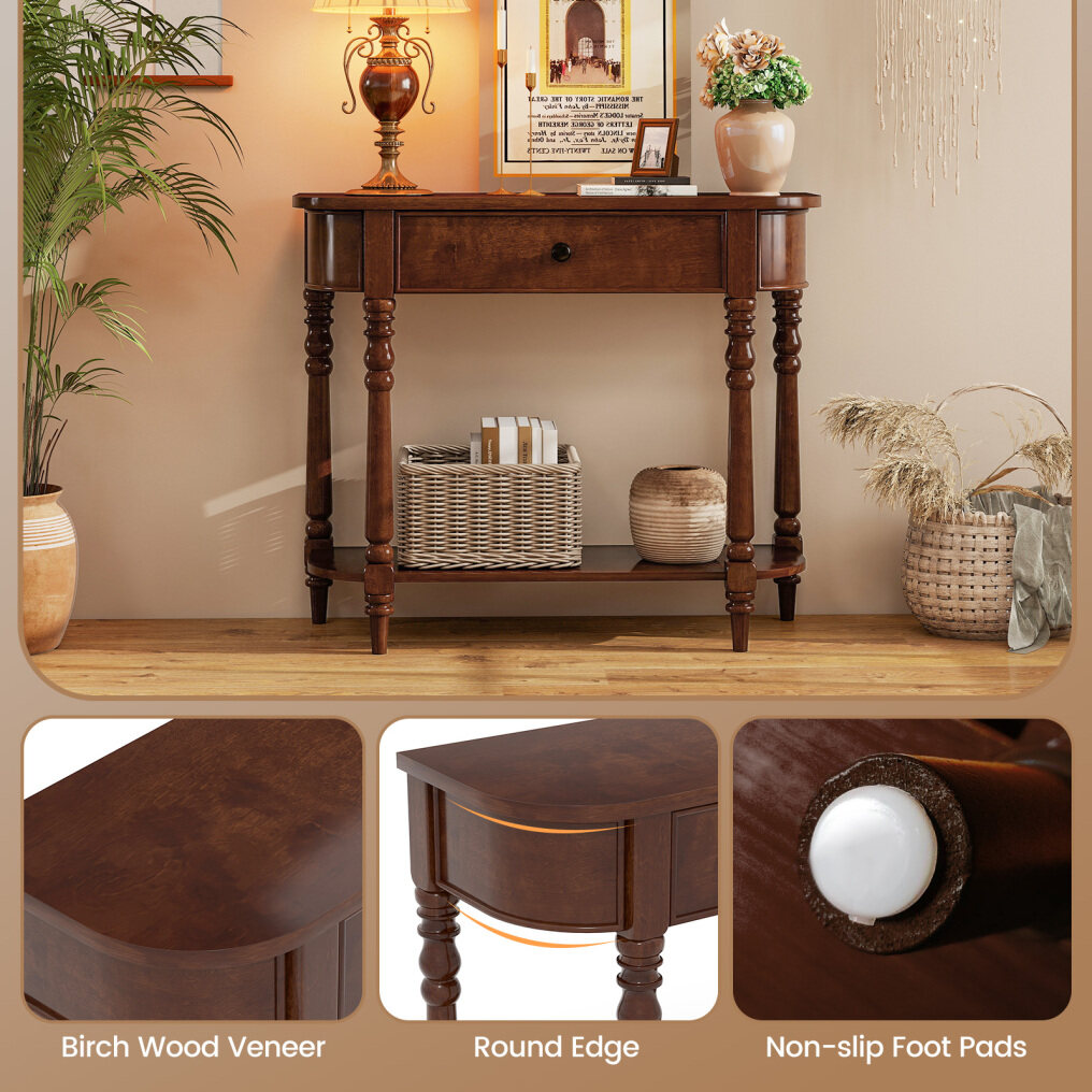 ● Ample Storage Space: This retro console table is not only a charming addition but also offers practical solutions. It features a spacious tabletop, a discreet drawer perfect for storing keys, remotes, and other small items, and a lower shelf ideal for books, vases, or baskets.