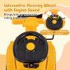 Ride the path of imagination with the foot-to-floor ride on road roller. The ride on car's adjustable roller and easy-to-operate levers let kids pretend they're working on roads, while ensuring hassle-free operation. Its steering wheel allows for smooth steering in any direction and has a fun engine sound button for added entertainment. With treaded wheels, a backrest, and an anti-tipping block, the construction vehicle offers stability and safety. Kids can store toys in the hidden compartment for convenience. The foot-to-floor design promotes independence by encouraging natural movement, helping to develop balance, coordination, and leg strength. This ride on car is ASTM compliant and CPSIA certificated. More kid-friendly details await your discovery.
