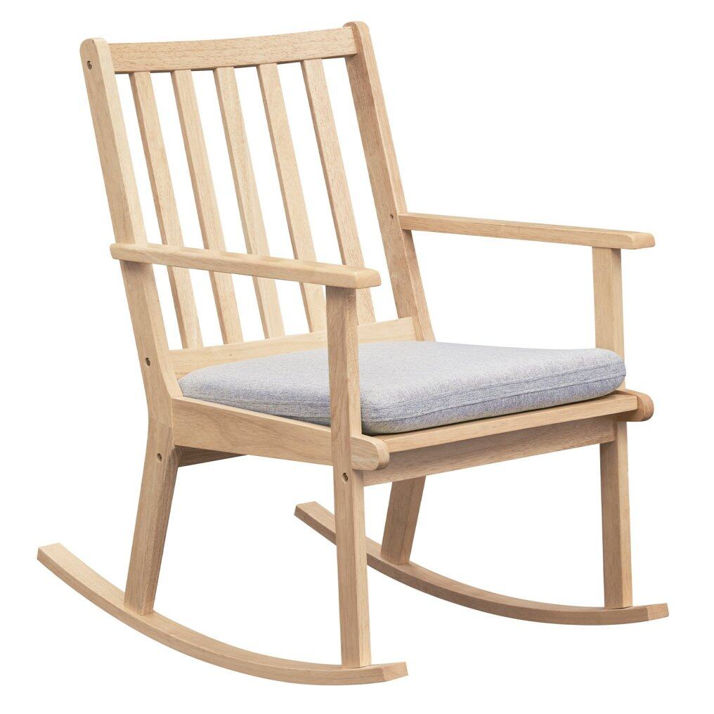 Rocking Chair with Cushion Solid Rubber Wood Rocker with Padded Seat-Natural