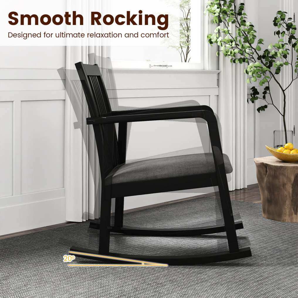 ● Comfortable Cushioned Seat: Featuring a seat filled with high-density sponge, this indoor rocker offers great comfort for extended sitting. The soft and breathable linen fabric adds an added layer of comfort.