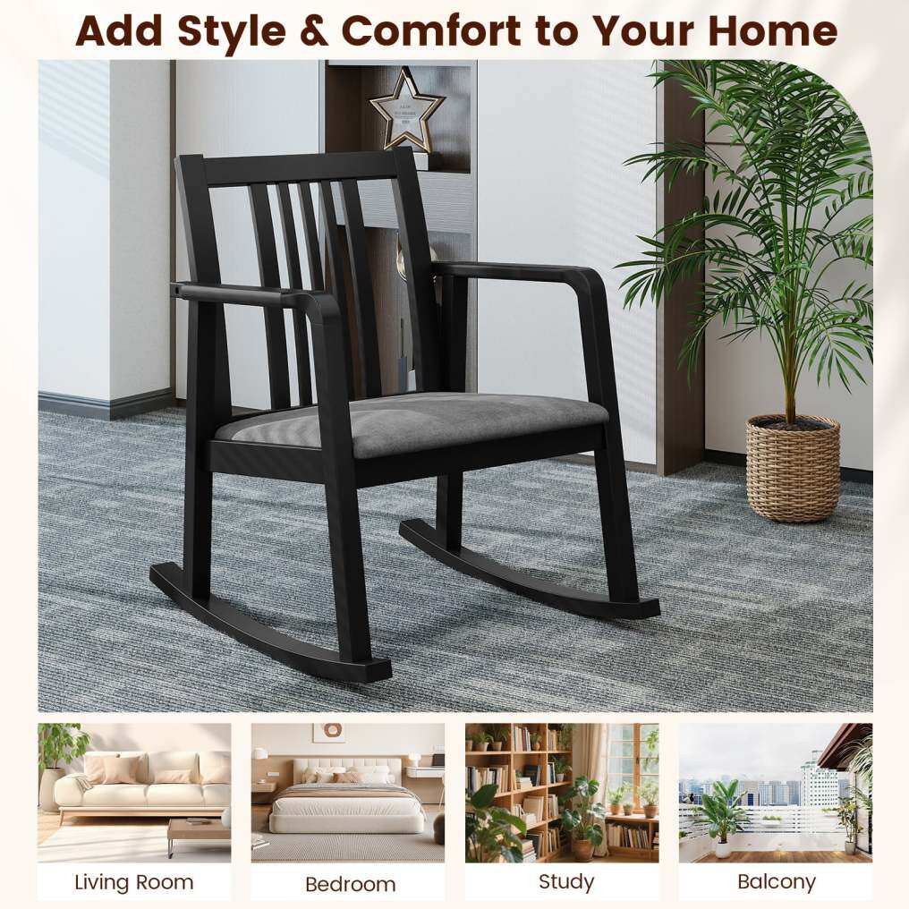 ● Versatile Placement: This cushioned rocking chair is ideal for reading, knitting, or unwinding in your living room, bedroom, study, balcony or covered patio. Its classic design can integrate seamlessly into a range of decoration styles.
