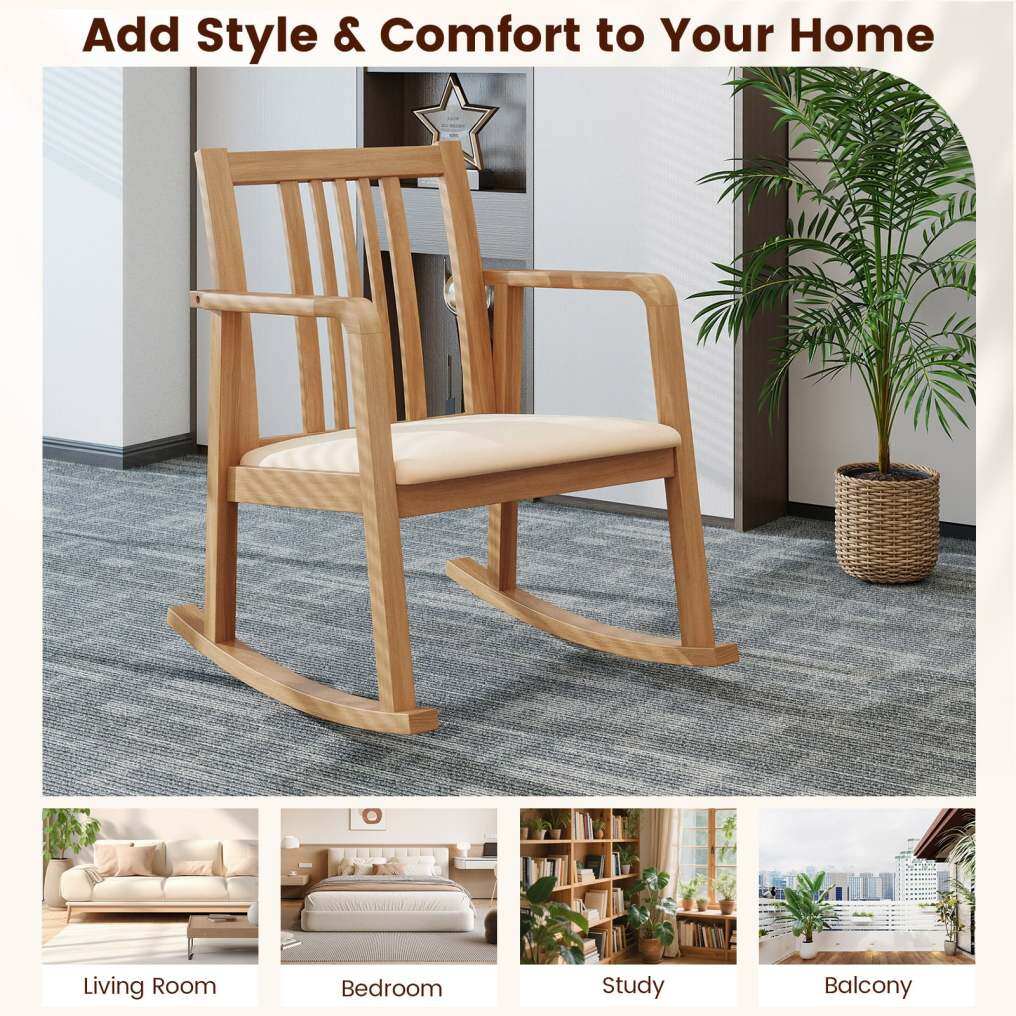 ● Comfortable Cushioned Seat: Featuring a seat filled with high-density sponge, this indoor rocker offers great comfort for extended sitting. The soft and breathable linen fabric adds an added layer of comfort.