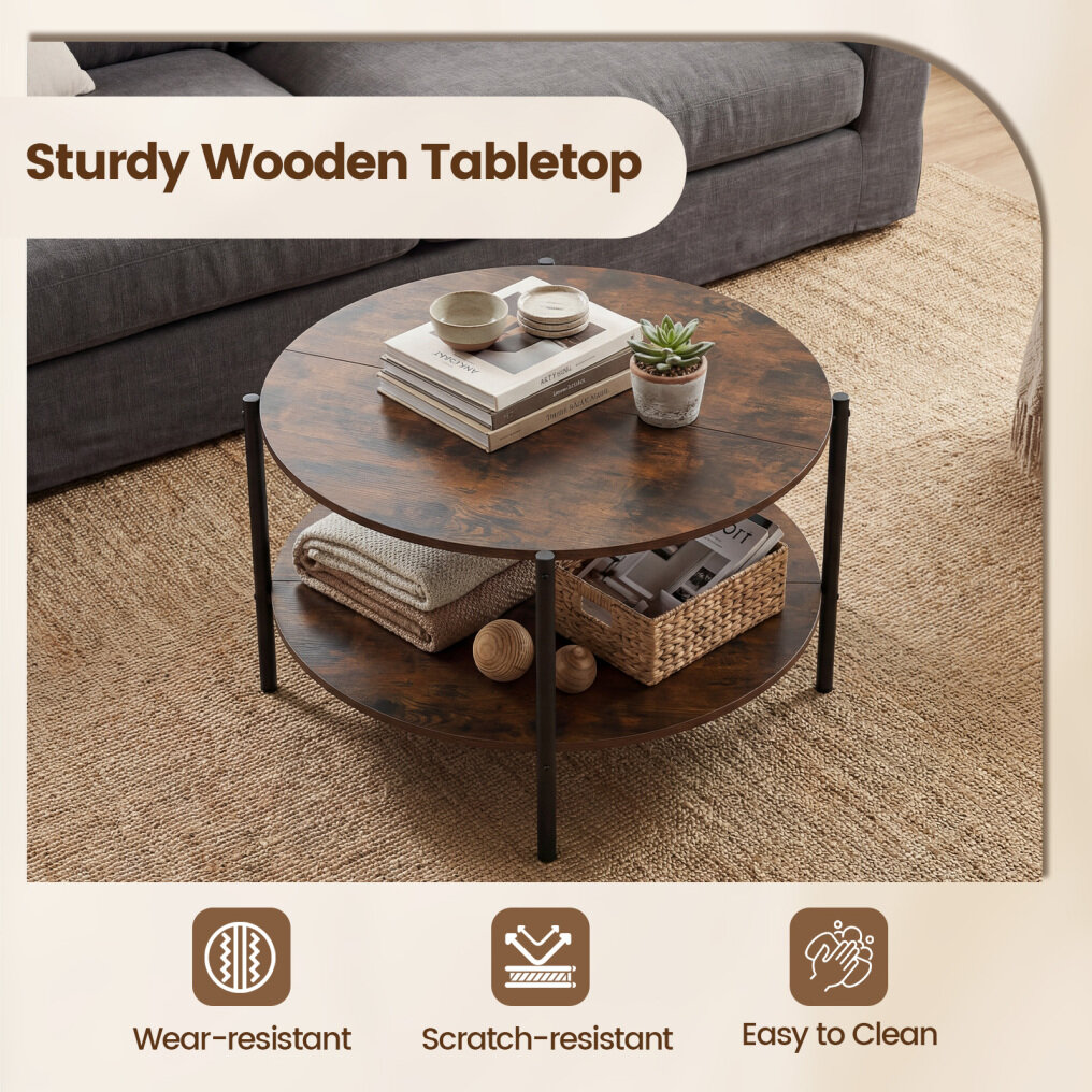 ●Timeless Appeal: This circle coffee table with shelf showcases a natural wood grain tabletop that adds warmth and simple beauty to any space. The smooth surface allows for easy cleaning, while rounded edges ensure safe daily use for families.
